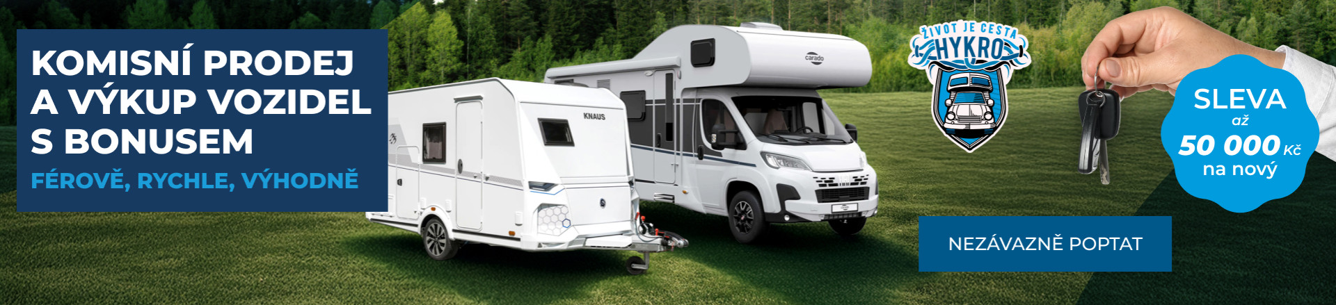 Vítejte na hykro.cz, vašem prvním a posledním místě, kde najdete největší výběr karavanů a obytných aut v České republice. Jsme autorizovaným prodejcem a servisem značek Carado, Knaus, Weinsberg, Tabbert, Bravia, Kabe a Fendt. Naše zásoby vám nabízejí více než 100 vozidel, které jsou připraveny ke splnění vašich cestovatelských snů.