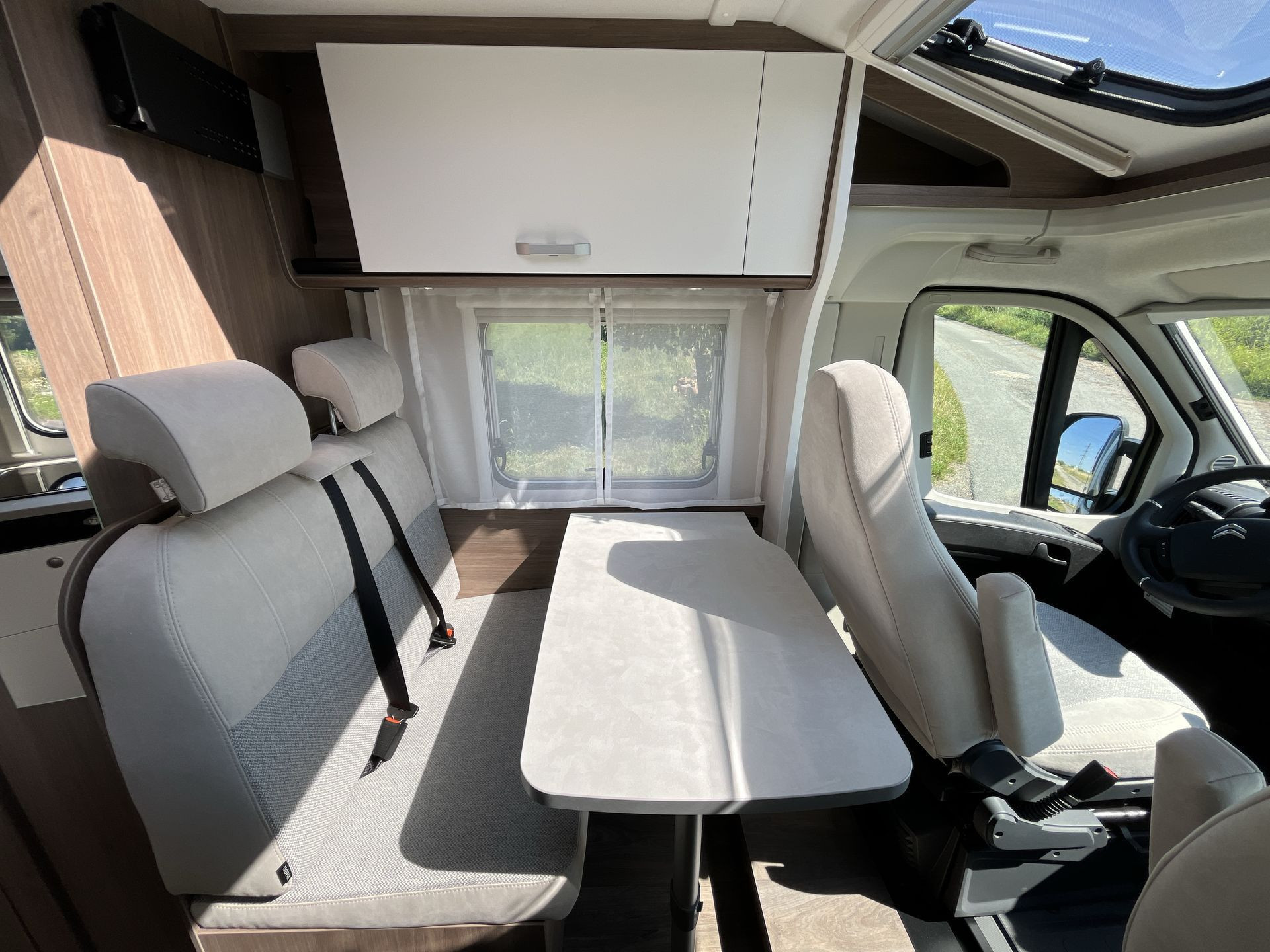 - Basic Paket (panoramatické střešní okno nad sezením, střešní okno 40 x 40 cm, obklad stěn a pevná zástěna sprchy, zrcadlo a šatní věšák, přední sedačky Captain Chair, zásuvky v kuchyni a garáži)