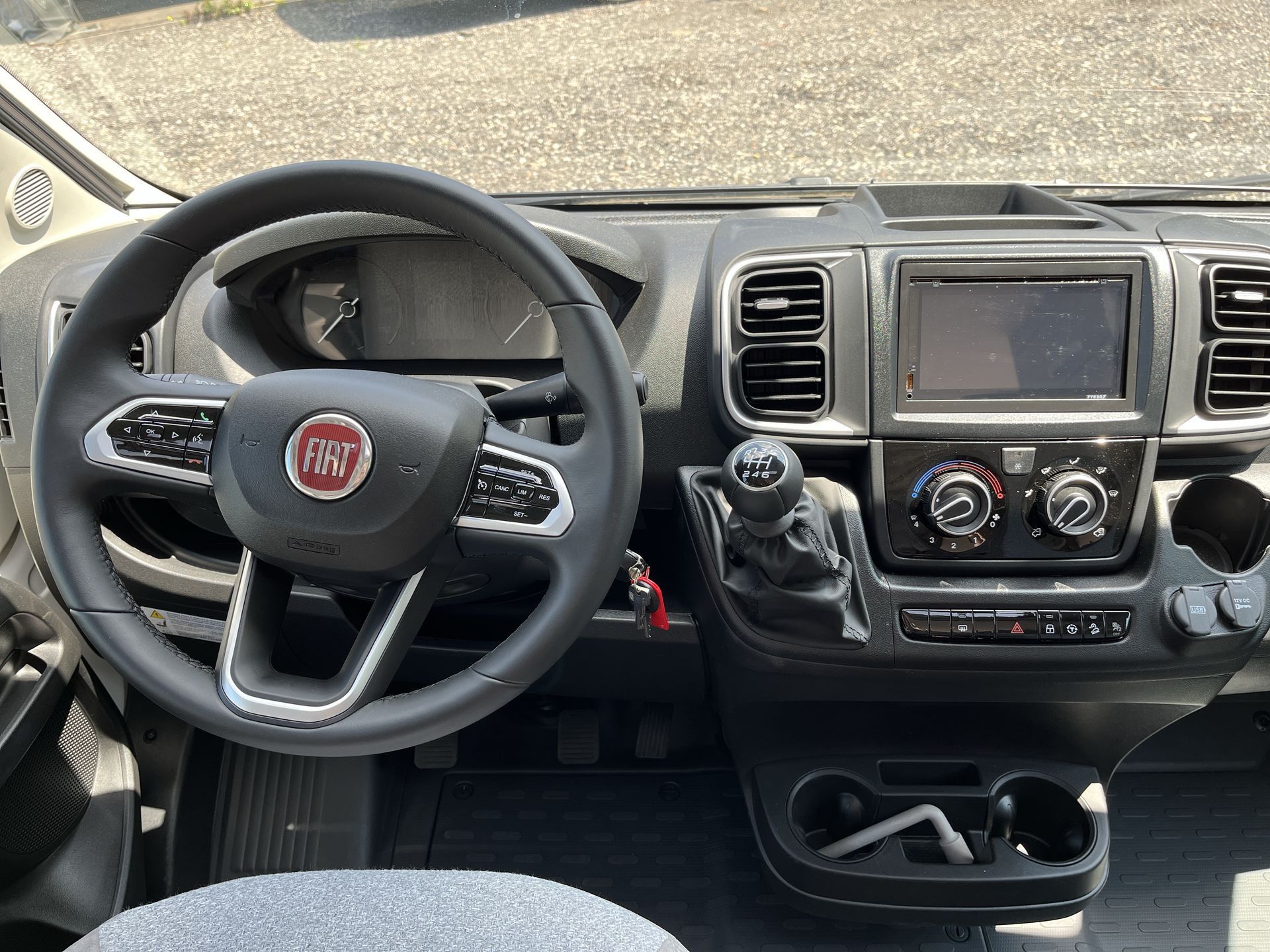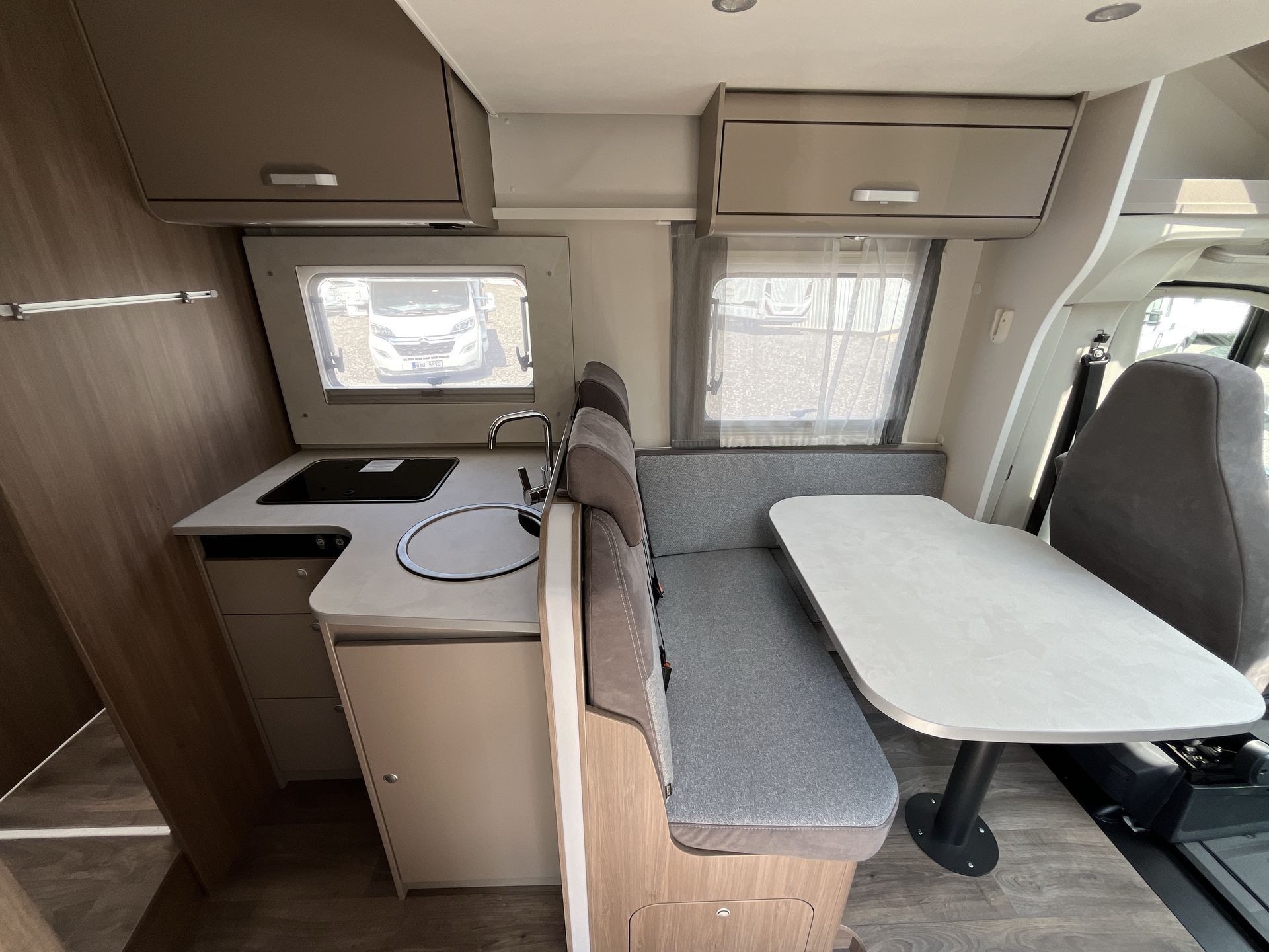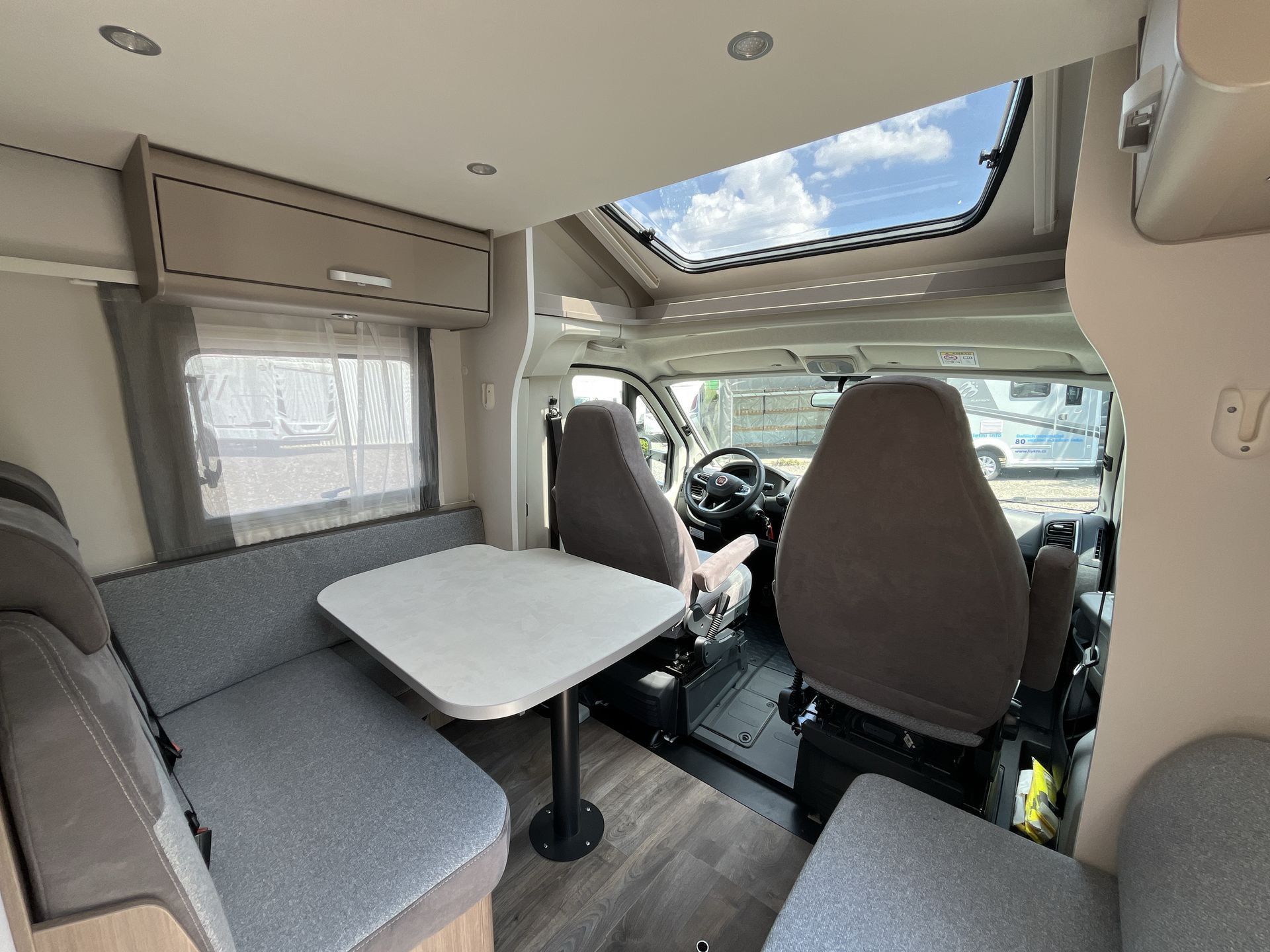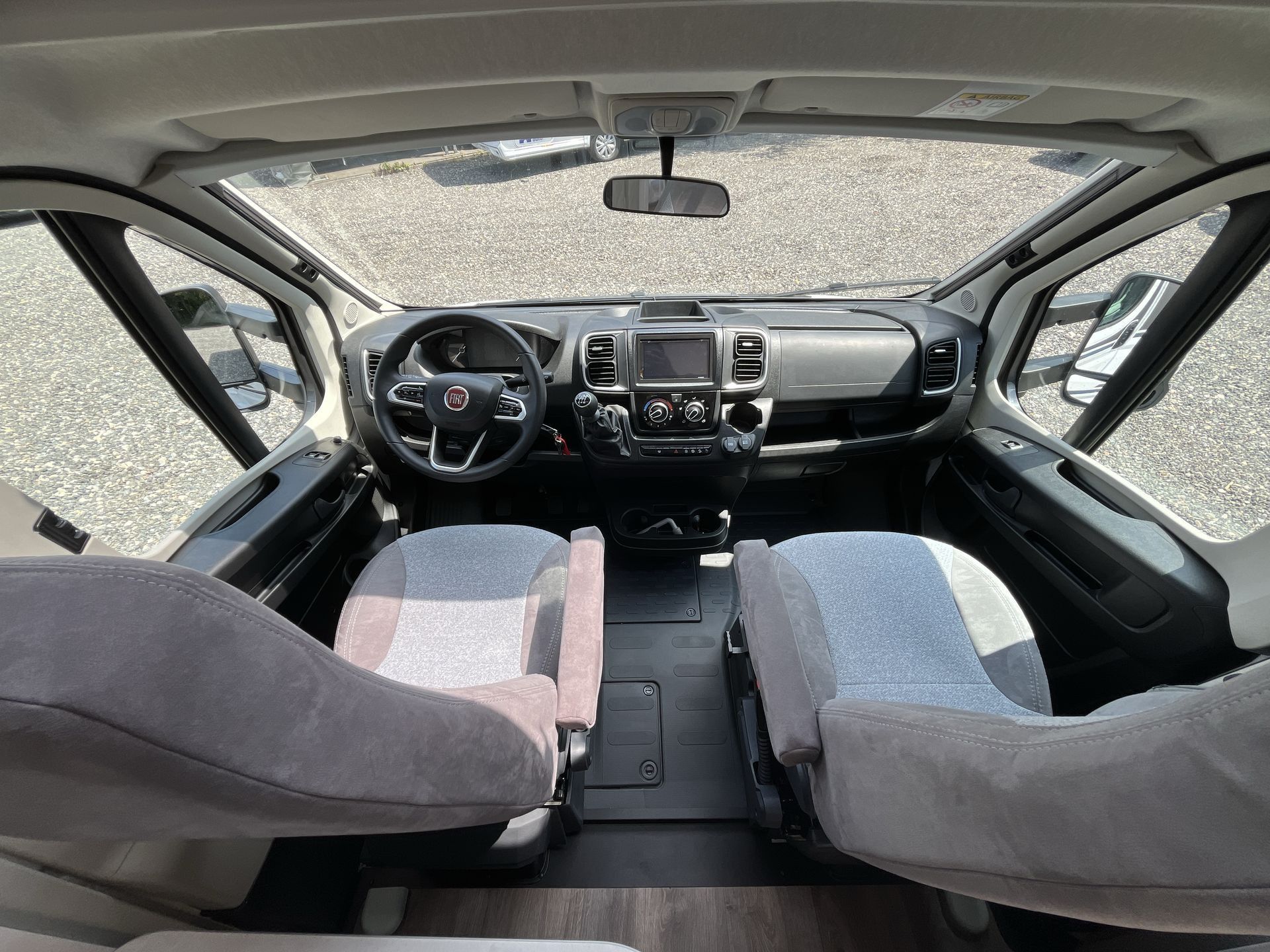 Krásně řešený polointegrovaný vůz s prostornou garáží, vhodný pro čtyři osoby na jízdu i spaní. Jeho velikou předností je, že má toaletu i sprchu oddělenou samostatně a dveřmi od toalety se dá uzavřít celá zadní část, takže máte naprosté soukromí na vykonání hygieny a v přední částí zatím může zbytek posádky dělat snídani nebo hrát karty :-)