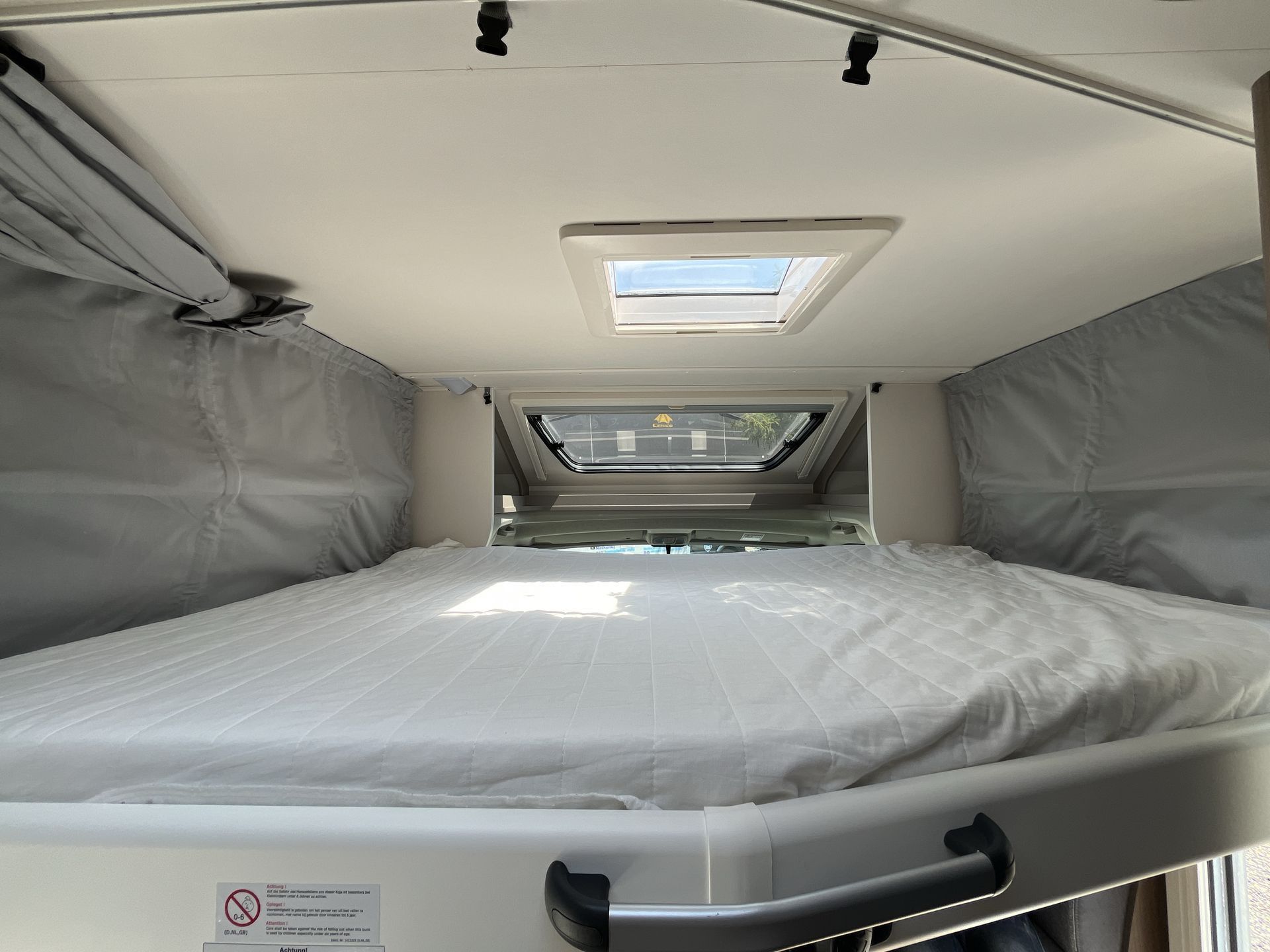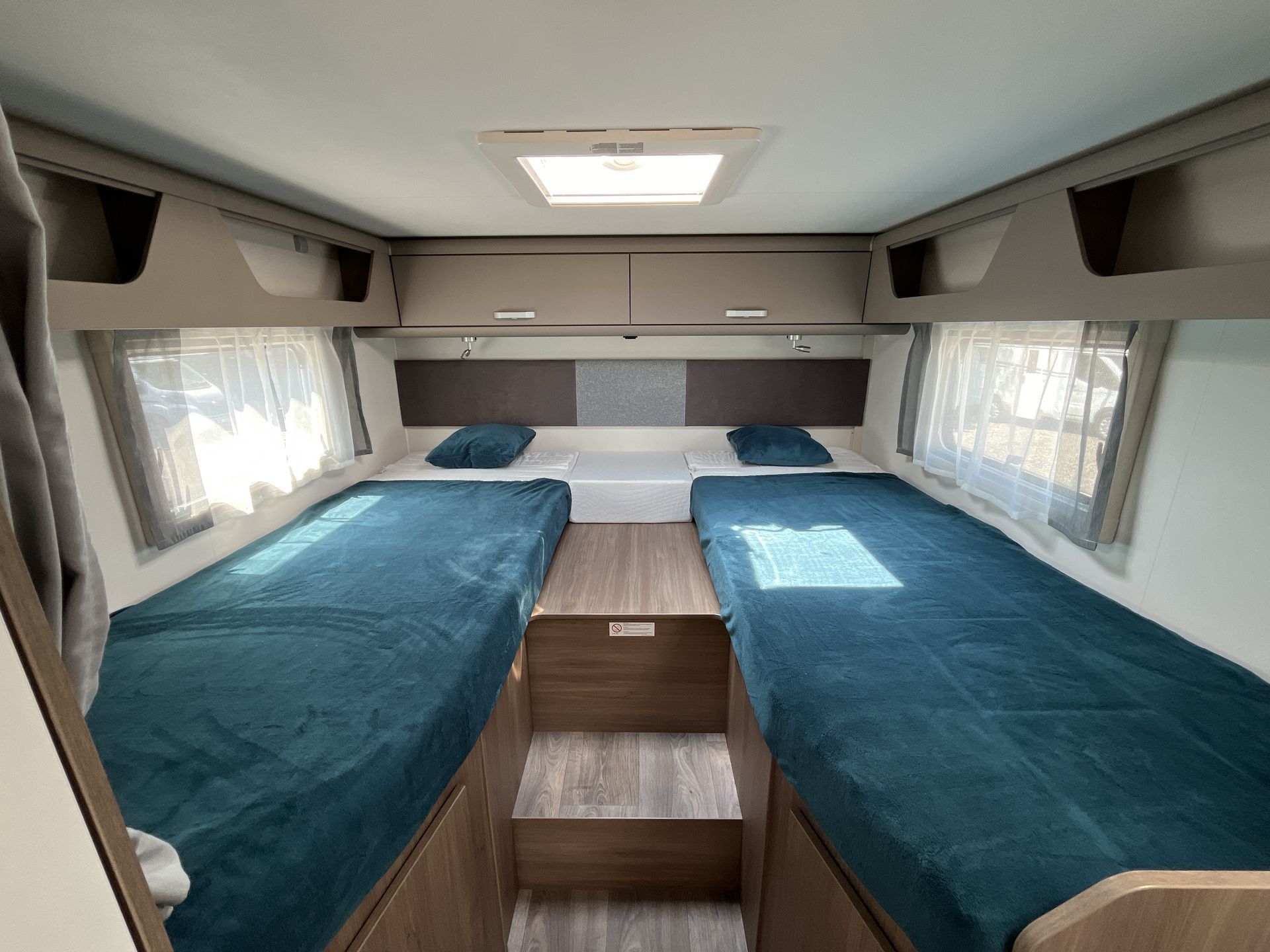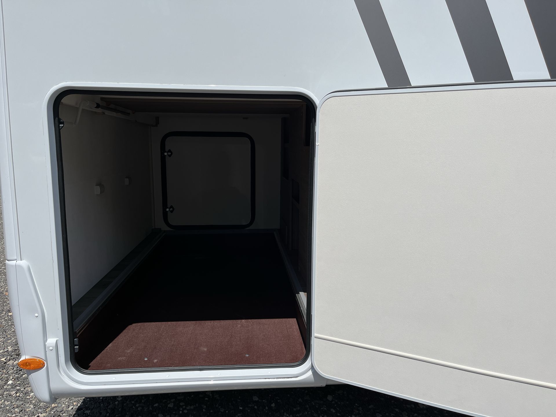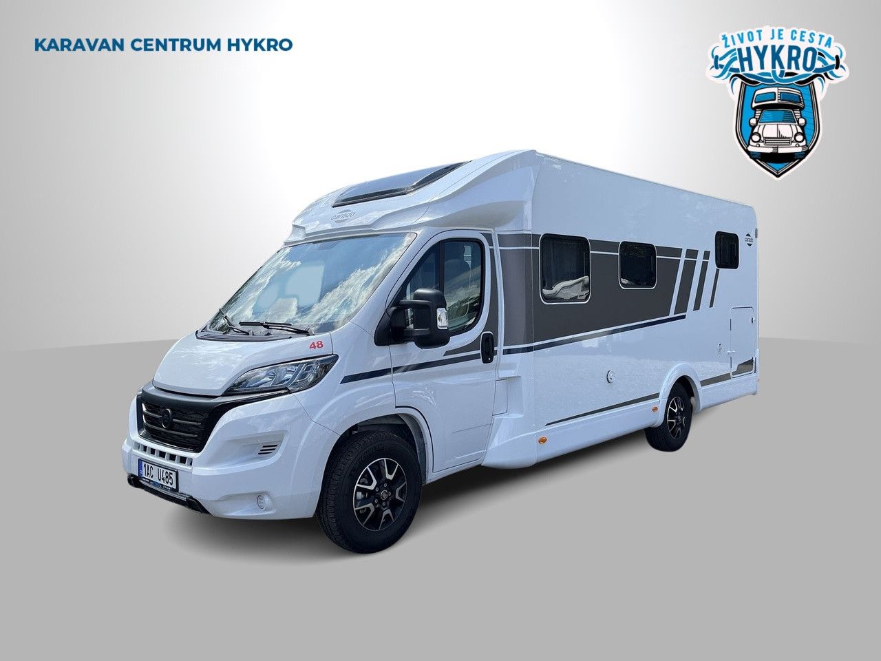Krásně řešený polointegrovaný vůz s prostornou garáží, vhodný pro čtyři osoby na jízdu i spaní. Jeho velikou předností je, že má toaletu i sprchu oddělenou samostatně a dveřmi od toalety se dá uzavřít celá zadní část, takže máte naprosté soukromí na vykonání…