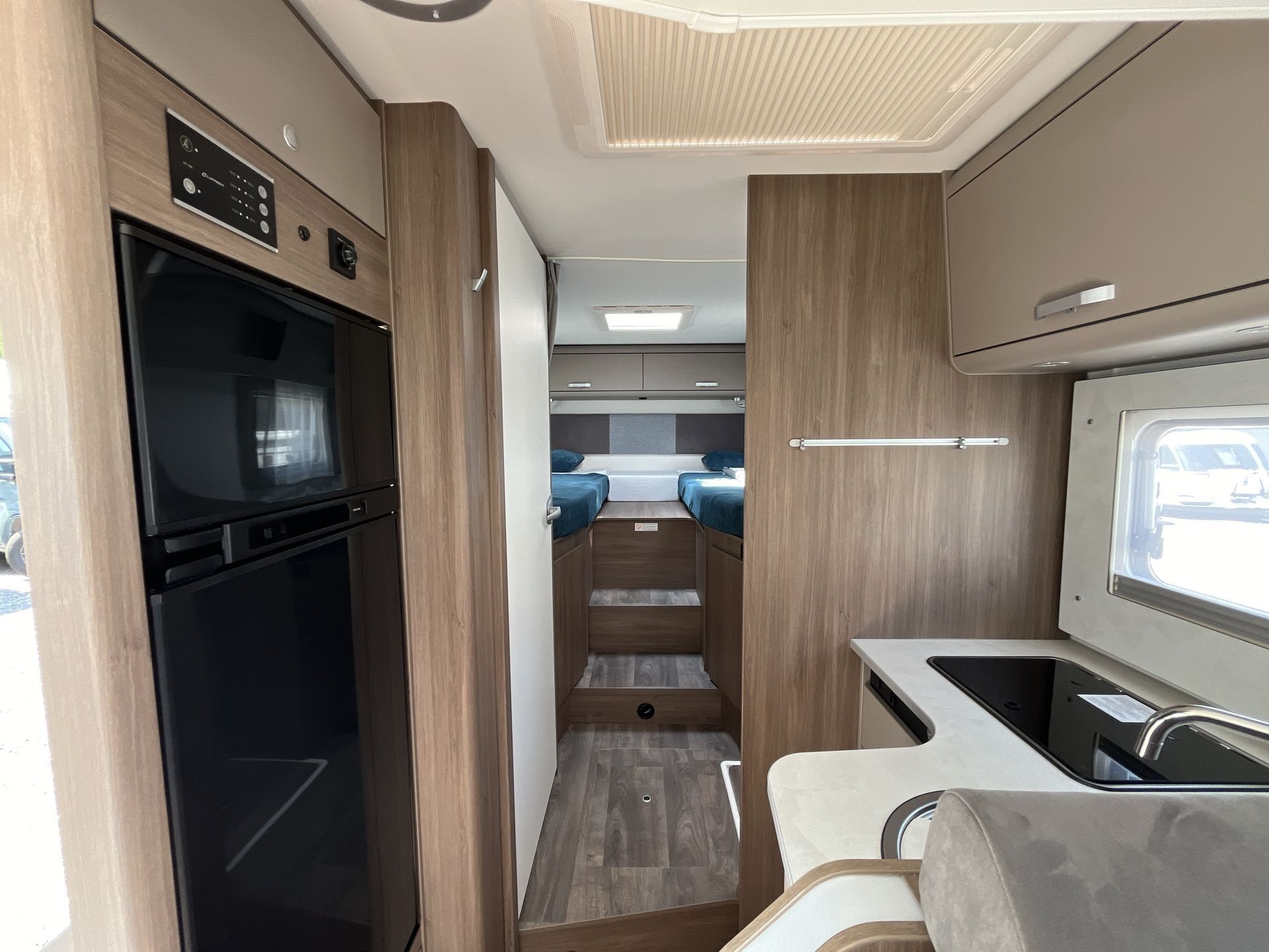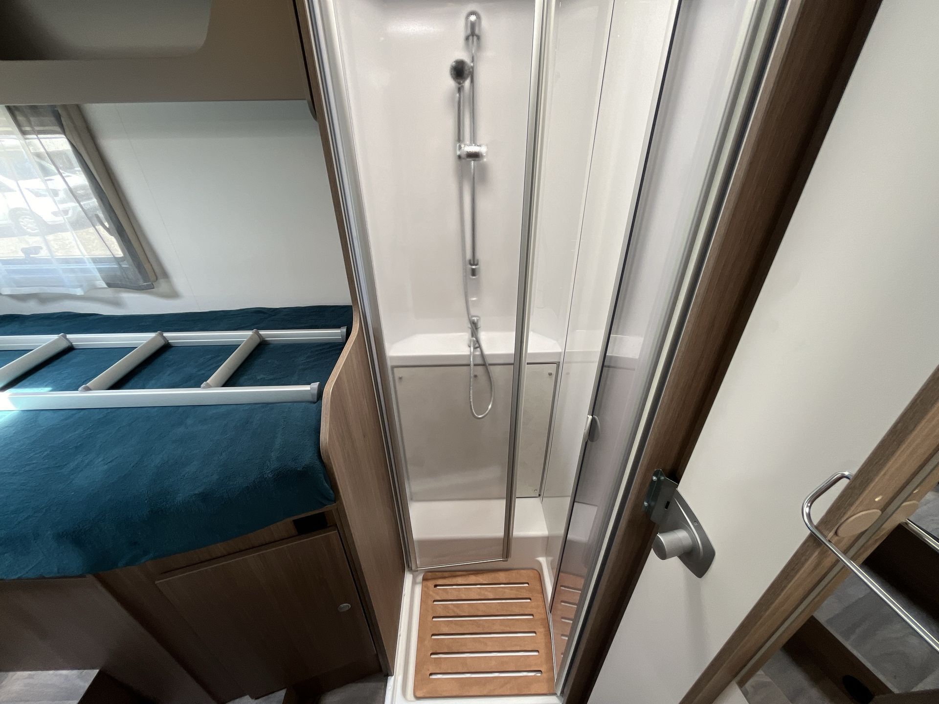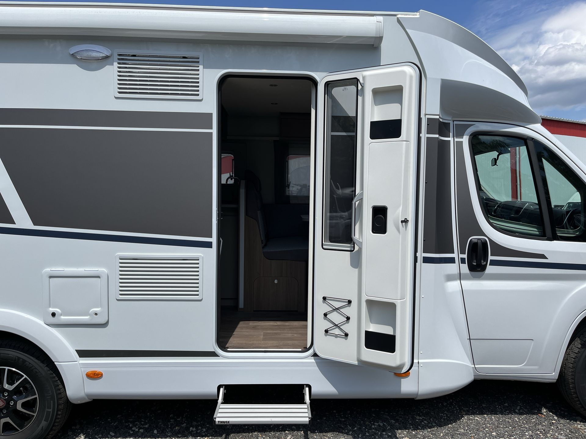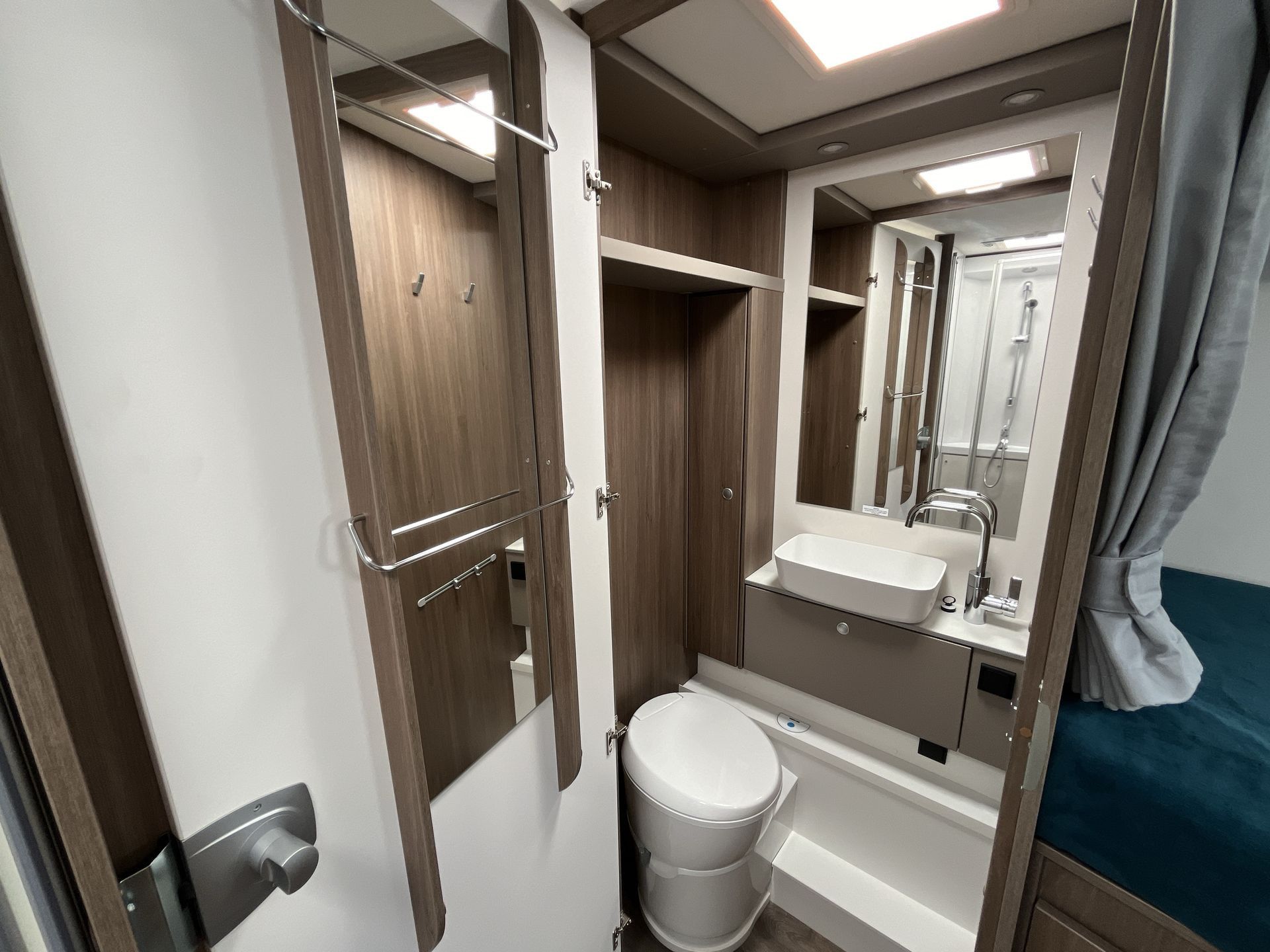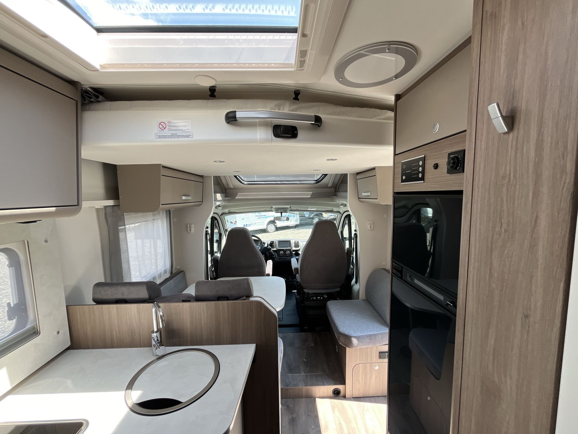 Krásně řešený polointegrovaný vůz s prostornou garáží, vhodný pro čtyři osoby na jízdu i spaní. Jeho velikou předností je, že má toaletu i sprchu oddělenou samostatně a dveřmi od toalety se dá uzavřít celá zadní část, takže máte naprosté soukromí na vykonání…