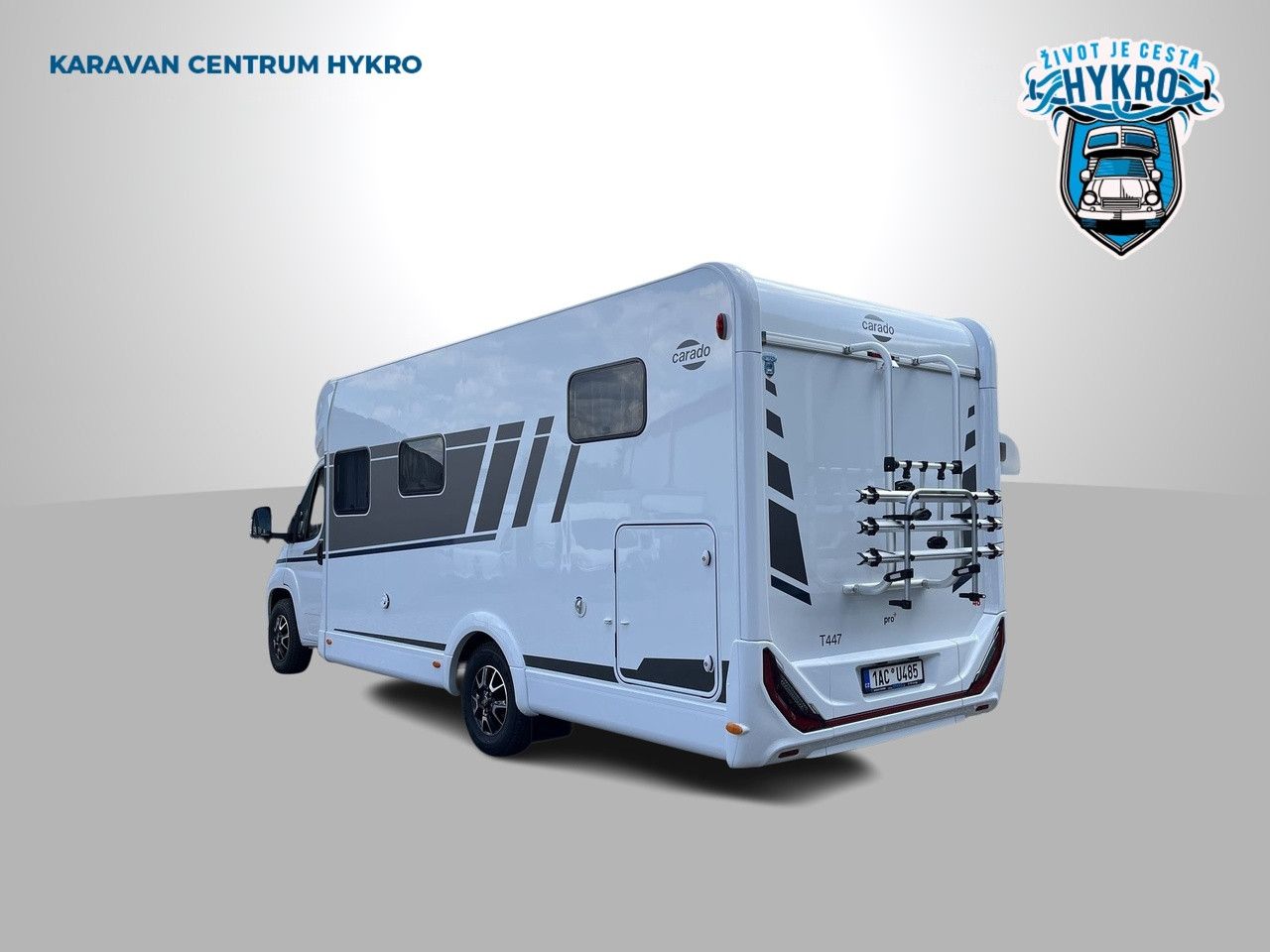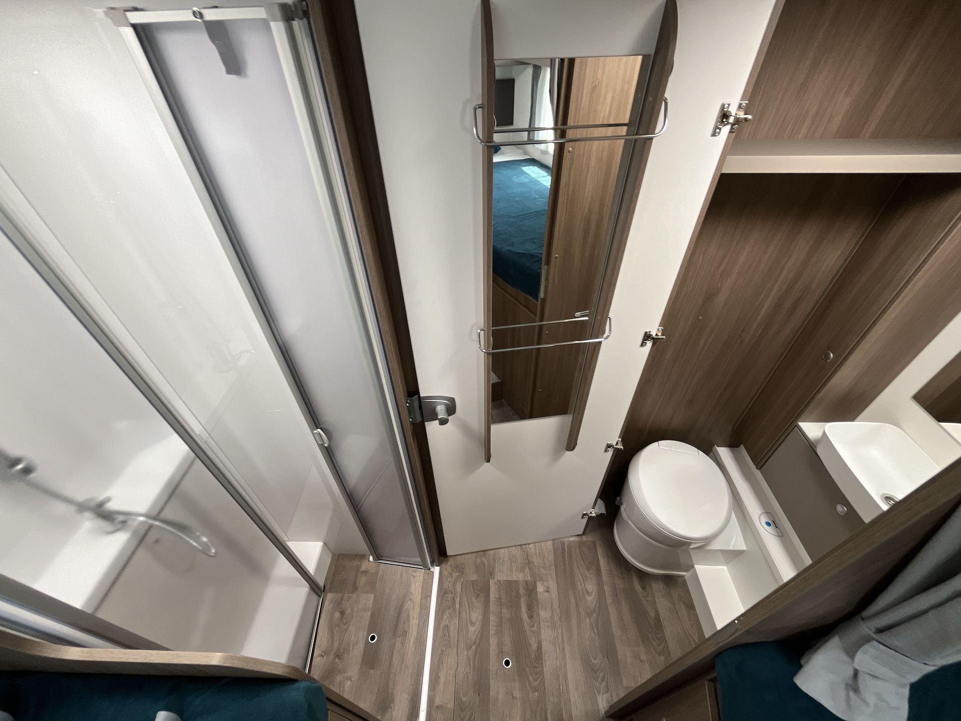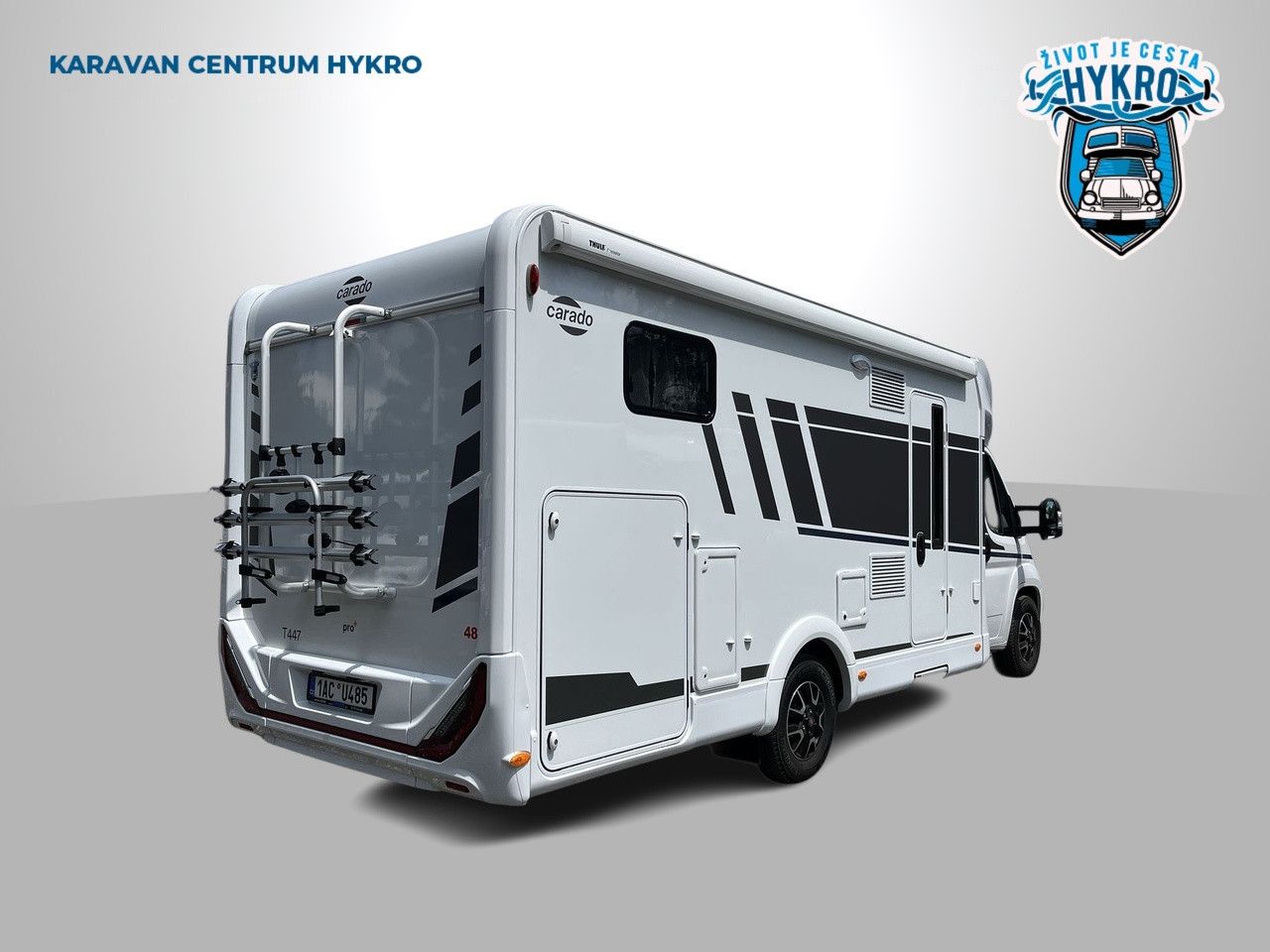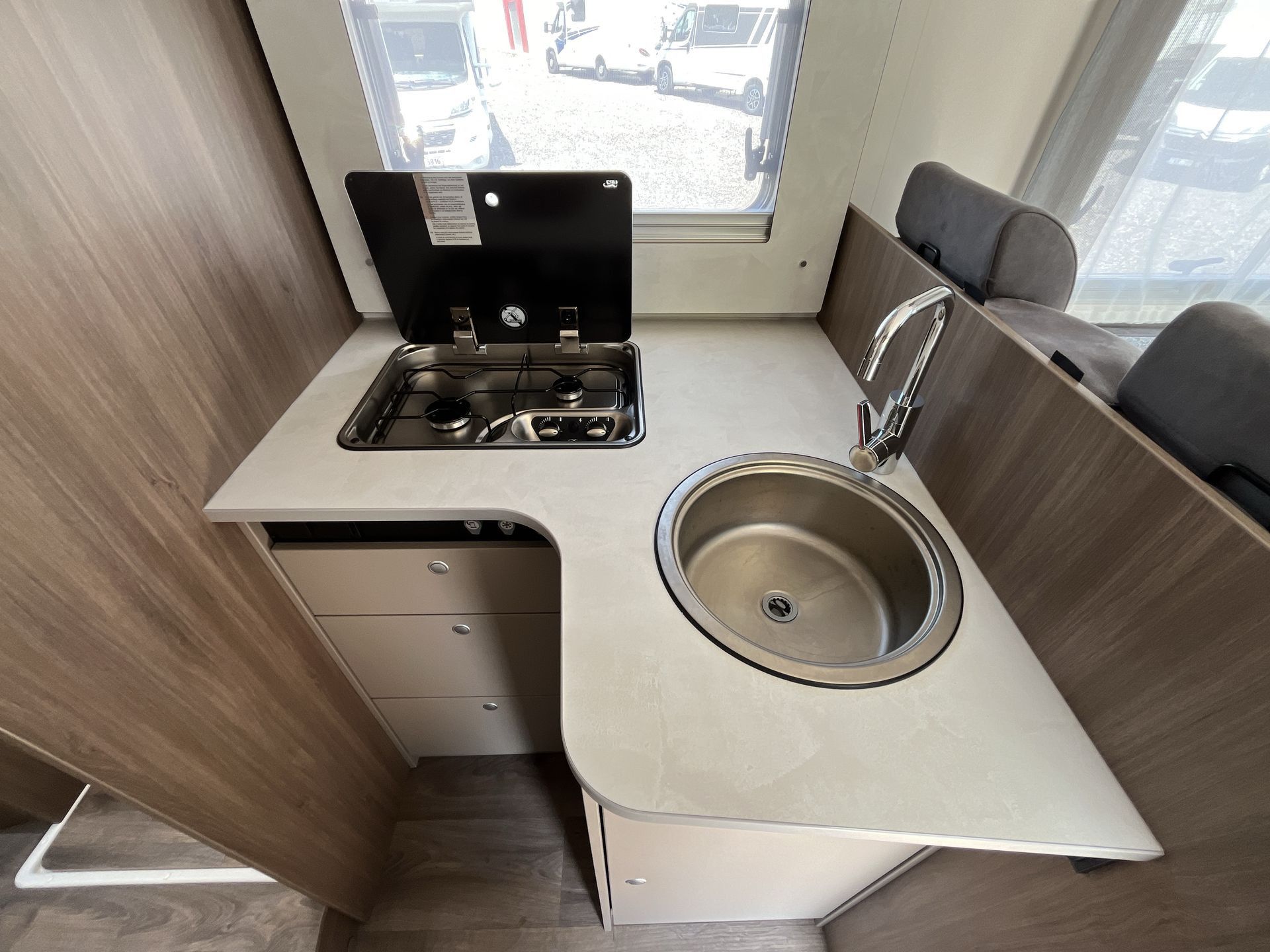 Krásně řešený polointegrovaný vůz s prostornou garáží, vhodný pro čtyři osoby na jízdu i spaní. Jeho velikou předností je, že má toaletu i sprchu oddělenou samostatně a dveřmi od toalety se dá uzavřít celá zadní část, takže máte naprosté soukromí na vykonání…
