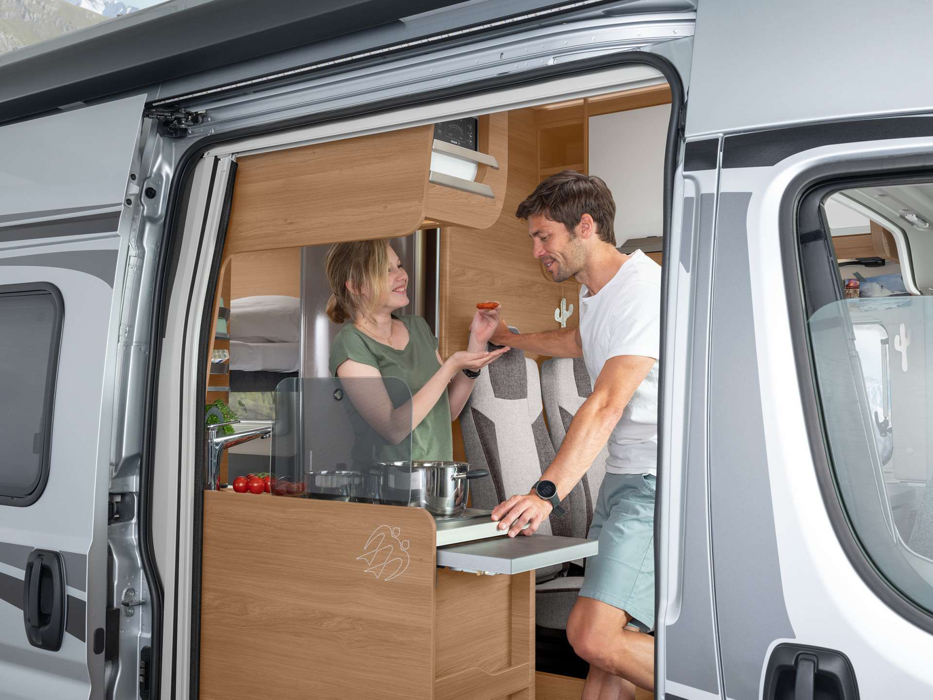 - dvojitá a polohovatelná boční okna, v kuchyni vždy s Kombi-Rollo