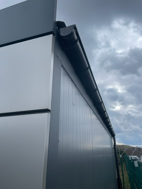 - boční stěny z profilovaného plechu, přední a zadní část z hladkého plechu, vnější uzamykatelná servisní dvířka