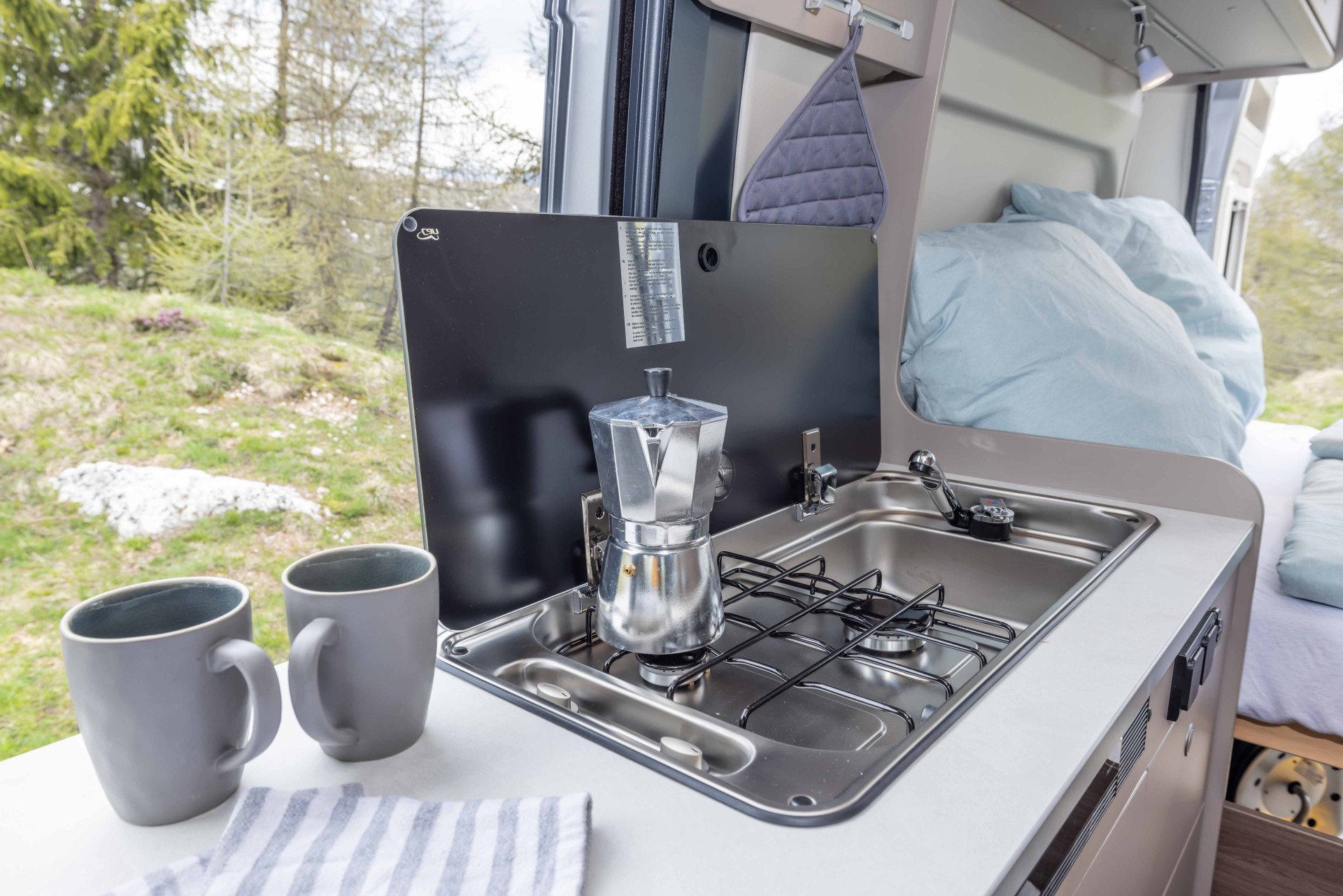 •   tříhořákový vařič s nerezovým dřezem a skleněným krytem