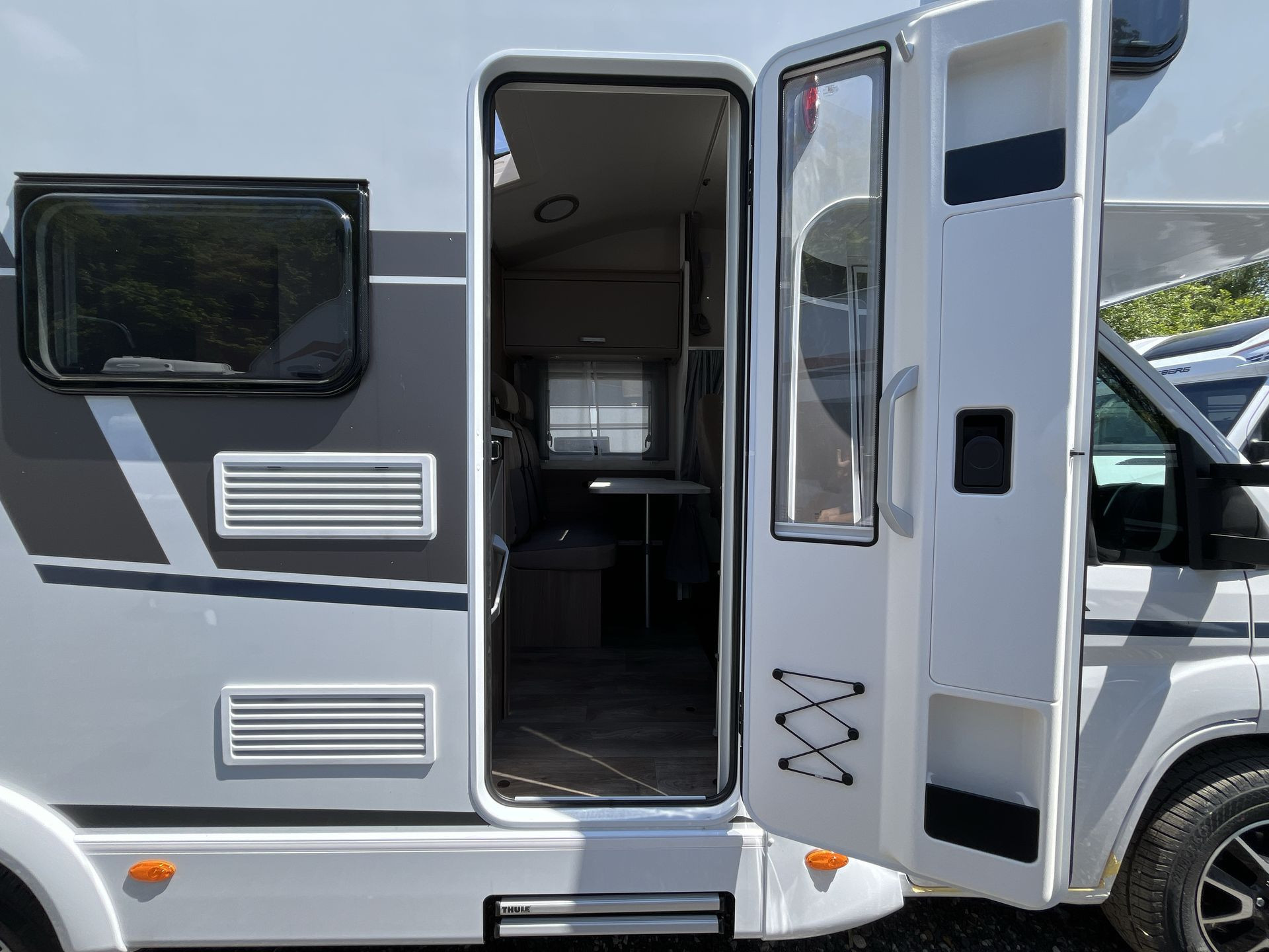 - dvojitá a polohovatelná boční okna, v kuchyni vždy s Kombi-Rollo