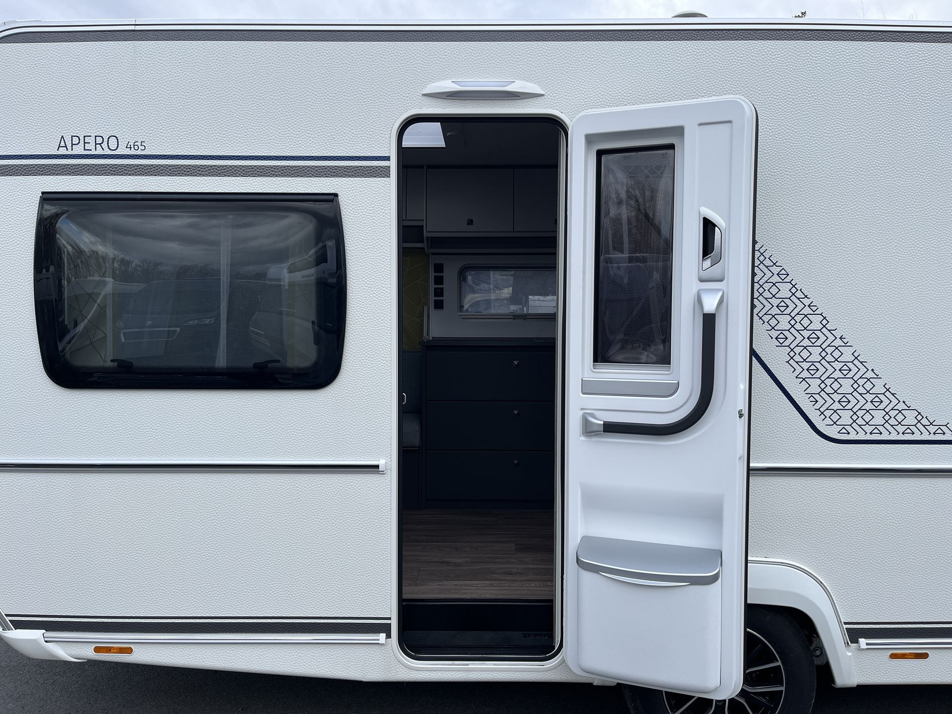 - dvojitá a polohovatelná boční okna, v kuchyni vždy s Kombi-Rollo