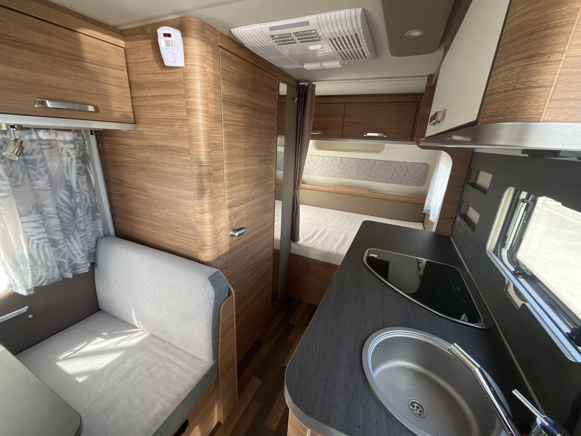- Basic Paket (panoramatické střešní okno nad sezením, střešní okno 40 x 40 cm, obklad stěn a pevná zástěna sprchy, zrcadlo a šatní věšák, přední sedačky Captain Chair, zásuvky v kuchyni a garáži)