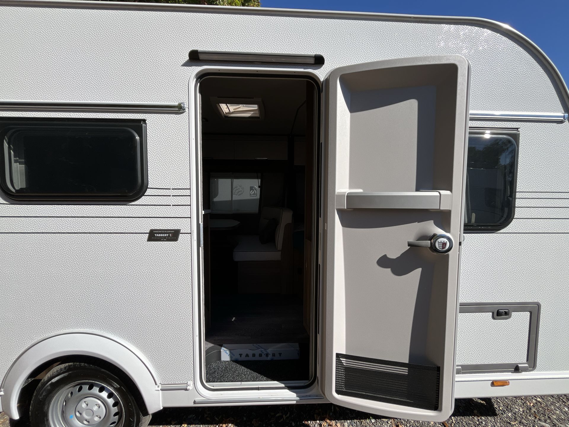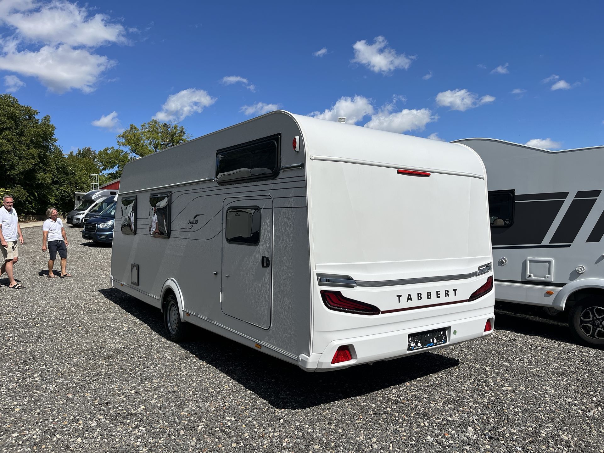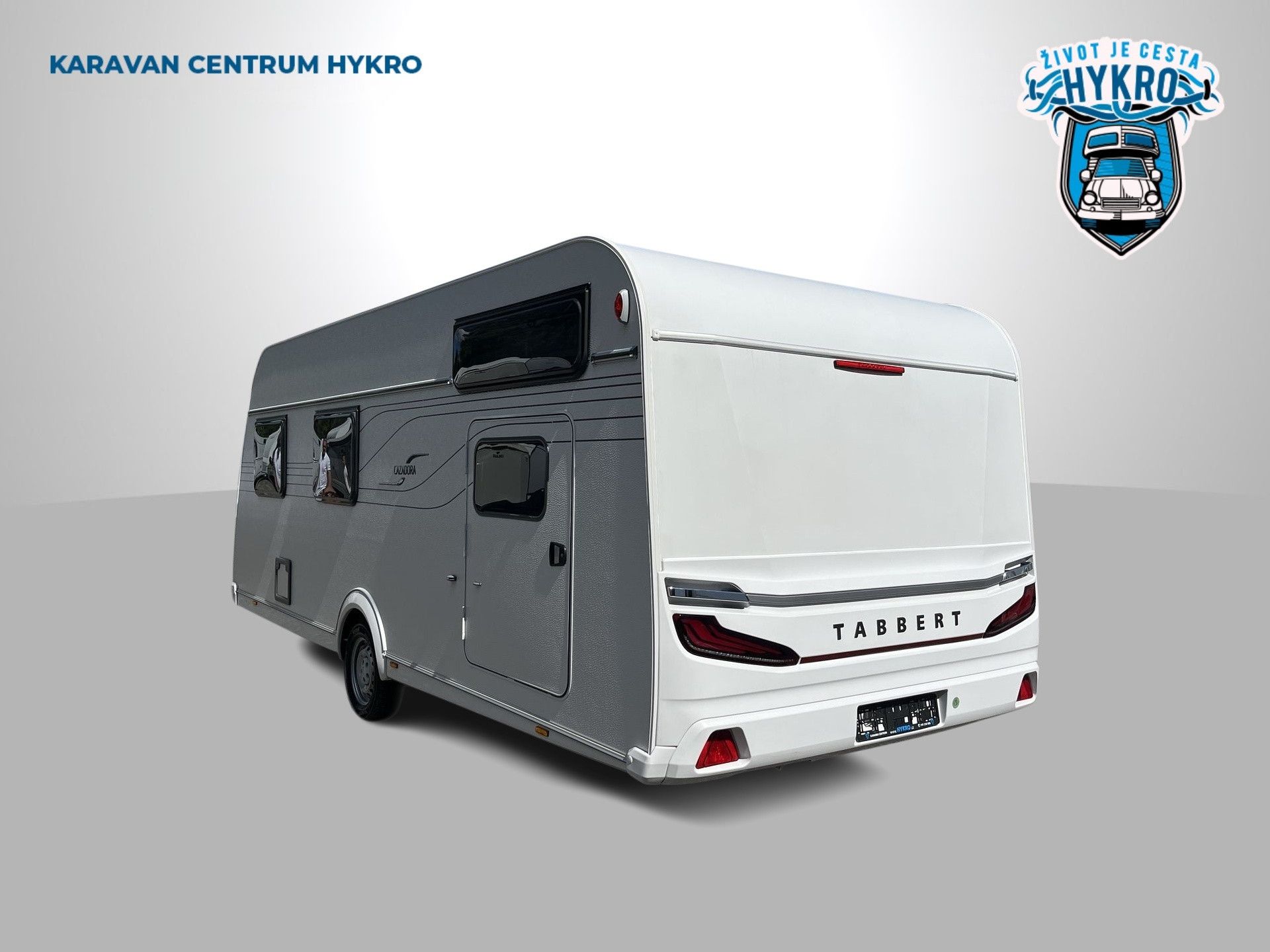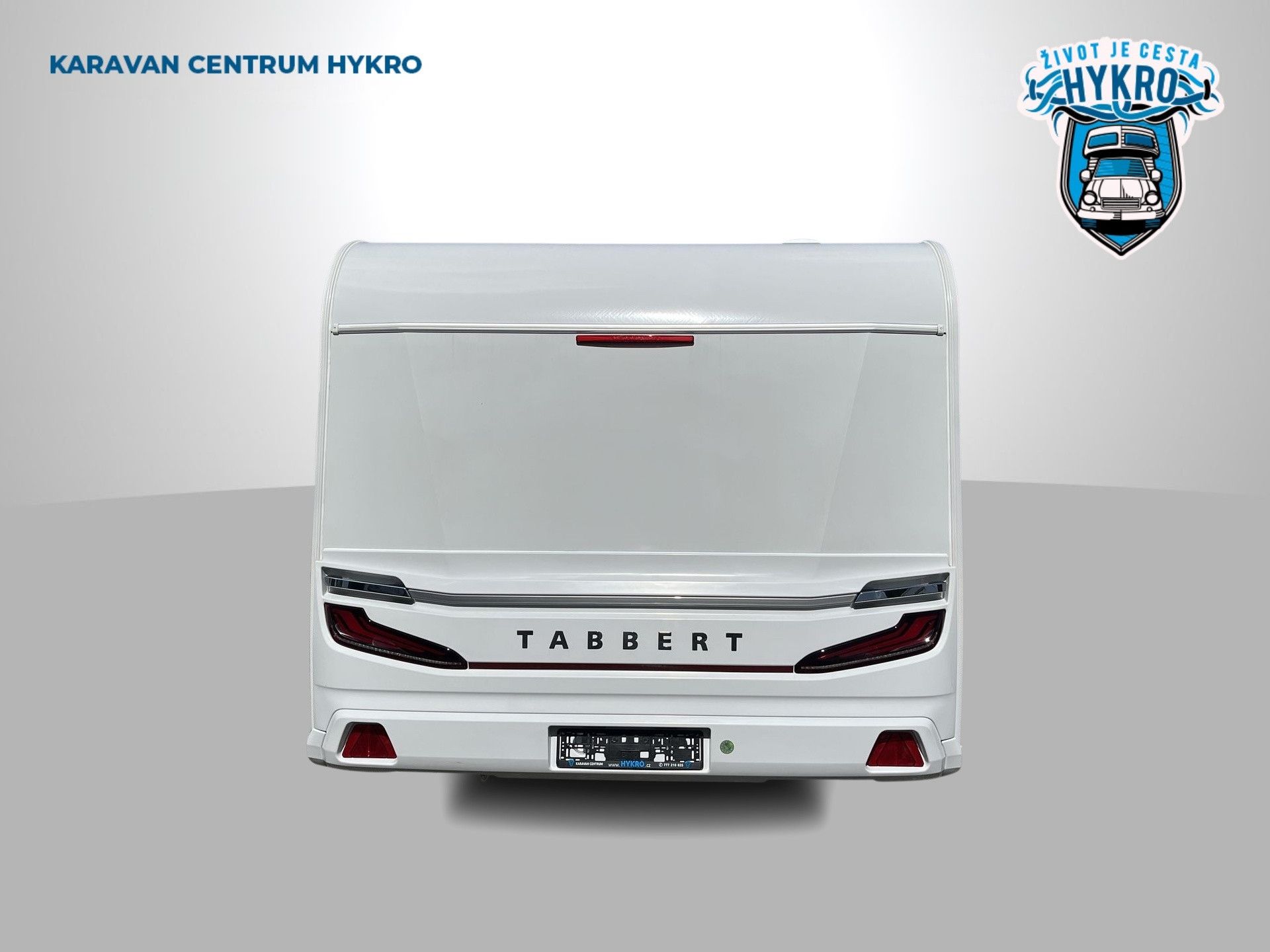 NÁSTAVBA: záruka těsnosti nástavby 10 let, vstupní dveře Tabbert Trend, integrovaný vstupní schůdek s logem Tabbert, systém jednoho klíče, Tabbert ServiceBox, vnější uzamykatelná servisní klapka levá a pravá, skříňka na plynové láhve s ocelovou podlahou (2x11 kg), okna s kombinovanými roletkami (zatemňovací + moskytiéra), vyklápěcí tónovaná okna se skvělou izolační schopností, střešní ventilátor (zadní), 2x střešní okno 40x40 cm s kombi roletkou, střešní okno 28x28 cm s moskytiérou na WC, okno 52x50 cm s kombinovanou roletkou na WC, GFK střecha se zvýšenou odolností proti kroupám, boční stěny z profilovaného plechu "Cool Grey", zadní světla Tabbert, LED vnější osvětlení