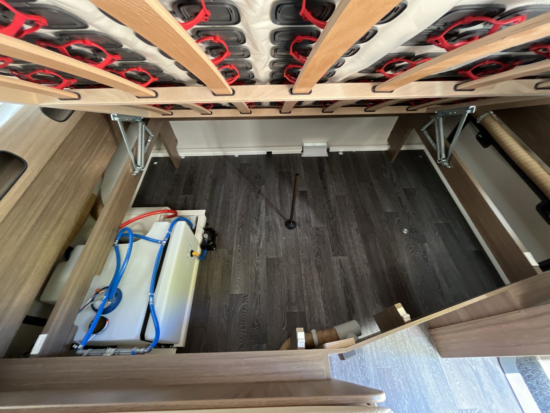 PREMIUM INTERIEUR PAKET: moskytiéra vstupních dveří, ukazatel stavu vody v nádrži, TABBERT komfortní lůžka s flexibilními rošty a vodní gelovou matrací, DEKO PAKET "Cazadora" - 4 polštářky a 2 deky