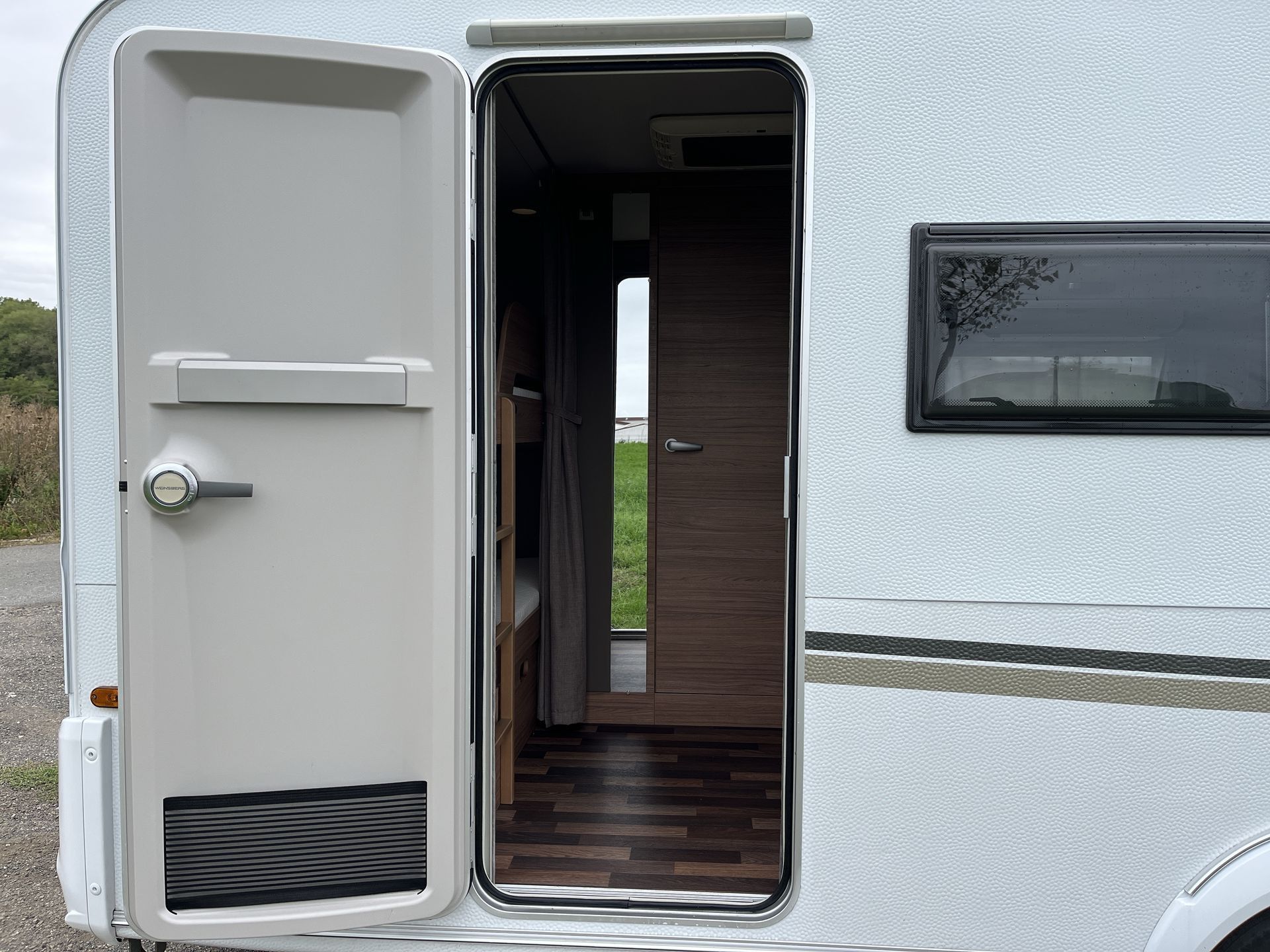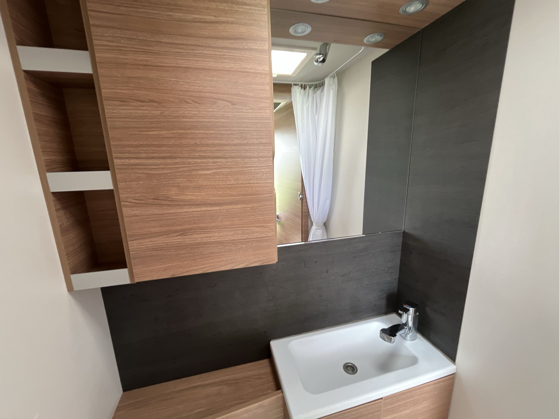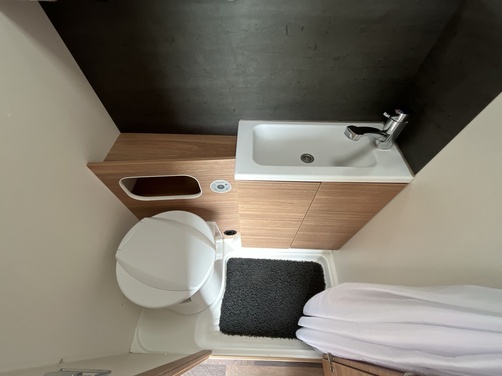 Advanced paket - mobilní odpadní nádrž 25 l, střešní okno 70 x 50 cm, moskytiéra proti hmyzu ve vstupních dveřích, bojler Truma, vybavení sprchy