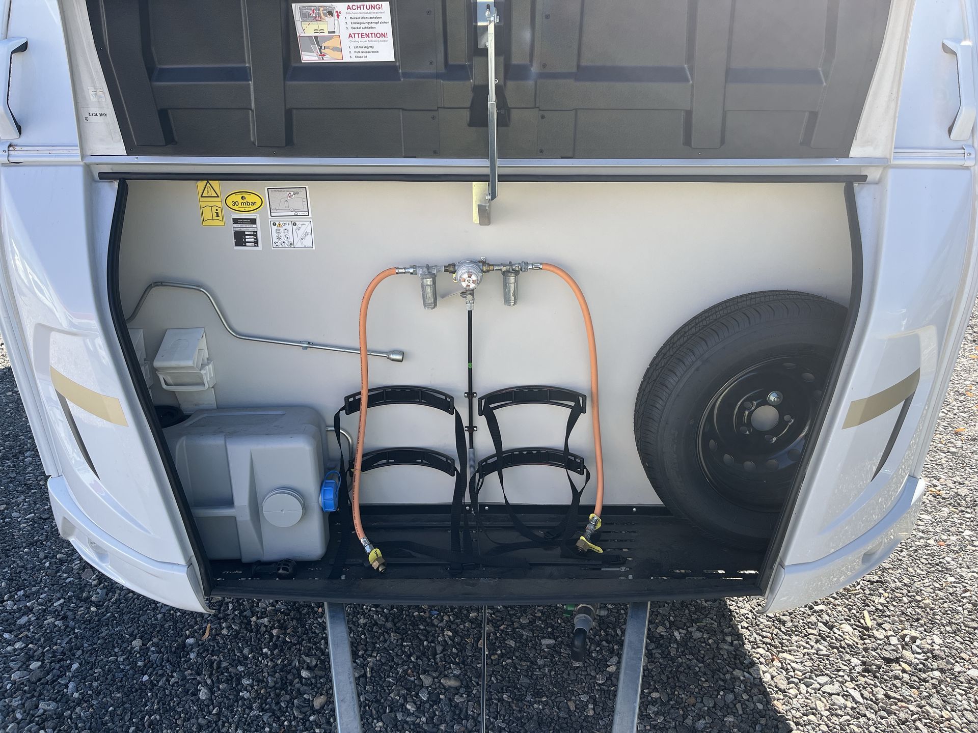 - ADVANCED PAKET: mobilní odpadní nádrž 25 litrů, střešní okno Midi-Heki 70x50 cm, moskytiéra ve vstupních dveřích, 5-ti litrový výměník pro ohřev vody Truma-Therme, kompletní vybavení sprchy