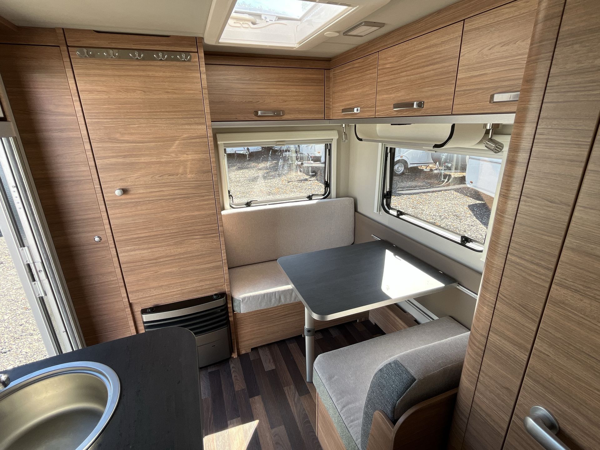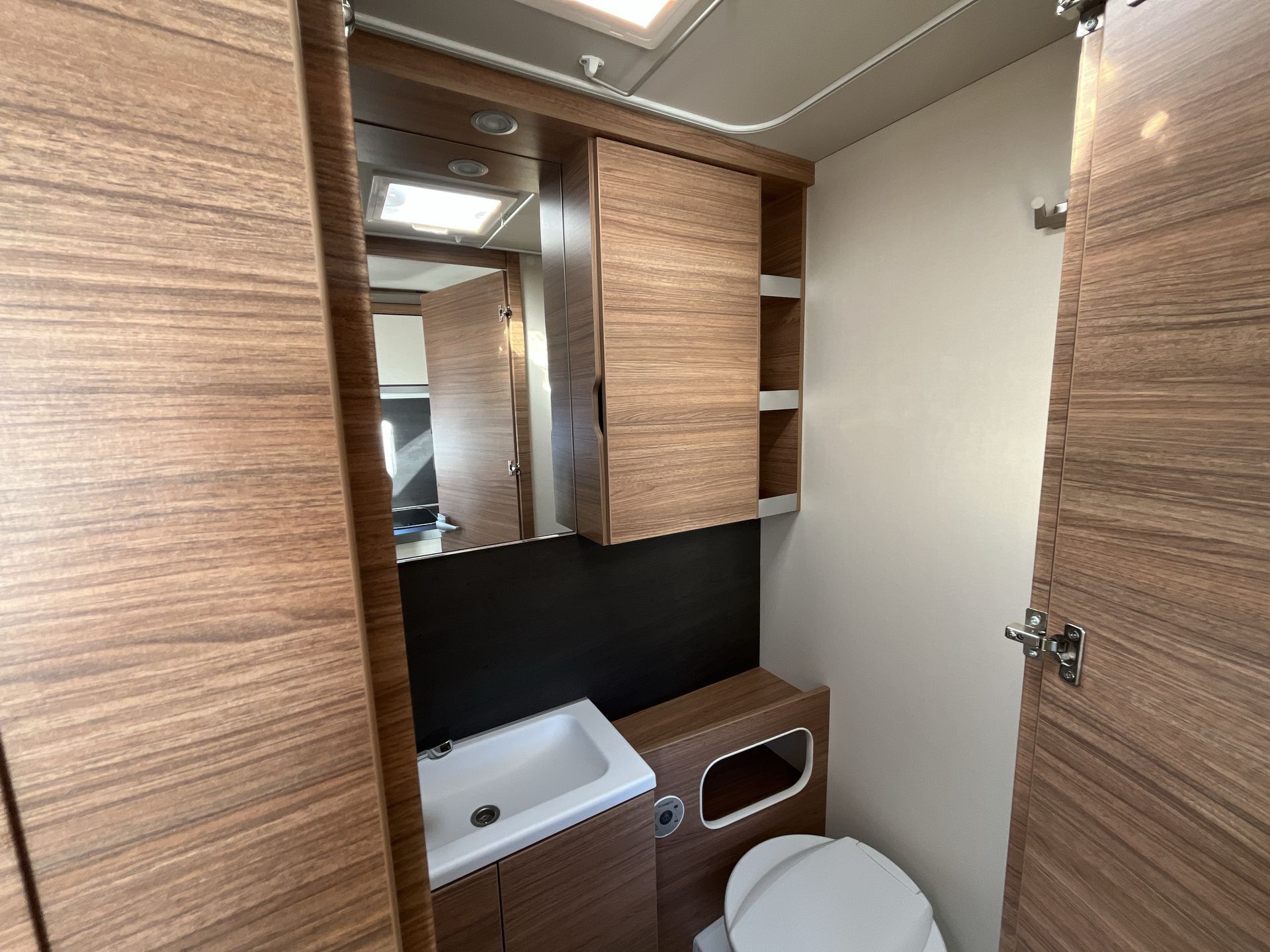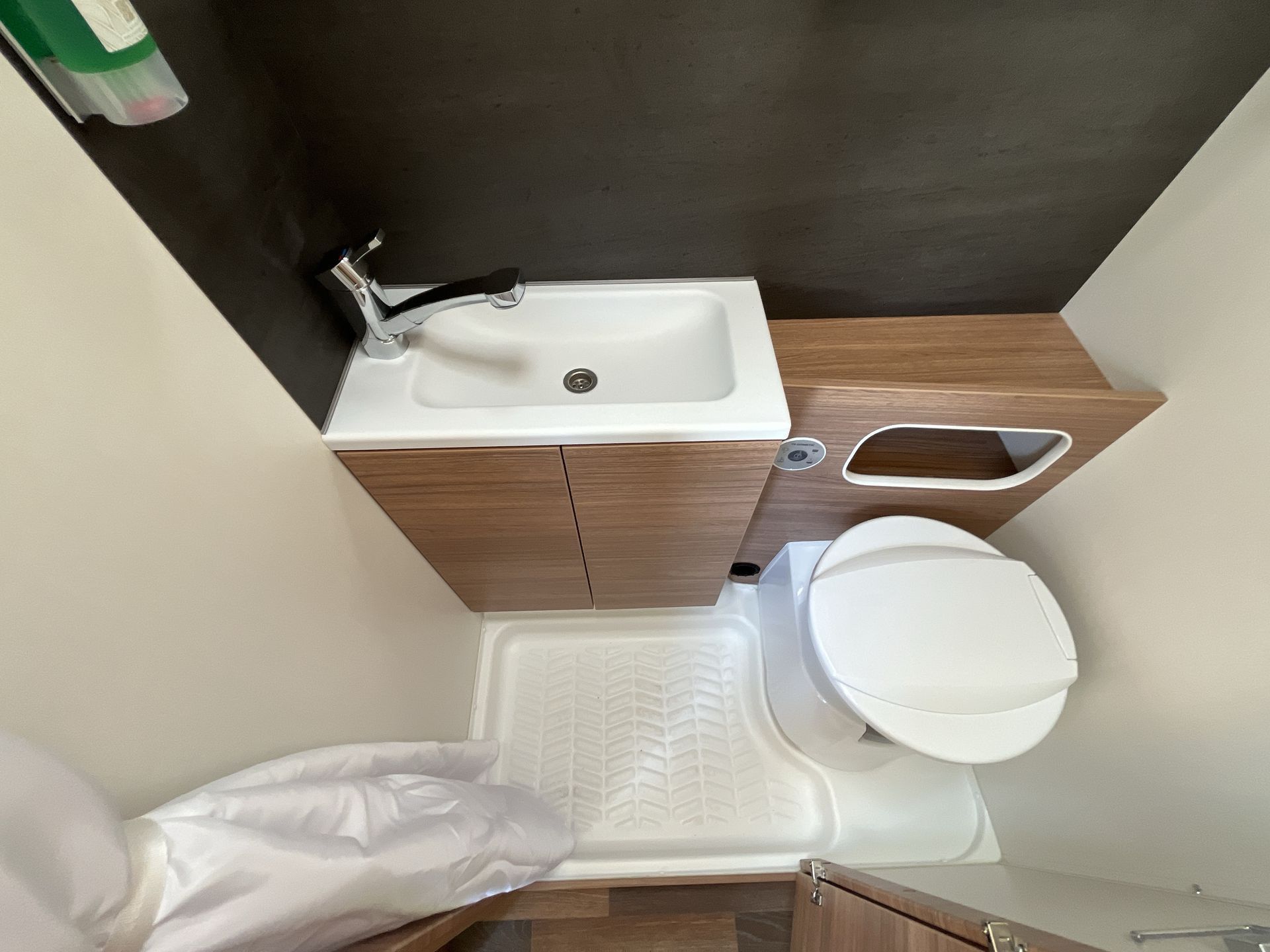 Advanced Paket: mobilní odpadní nádrž 25 l, střešní okno Midi Heki, moskytiéra ve vstupních dveřích, vybavení sprchy, ohřev vody Truma Therme.