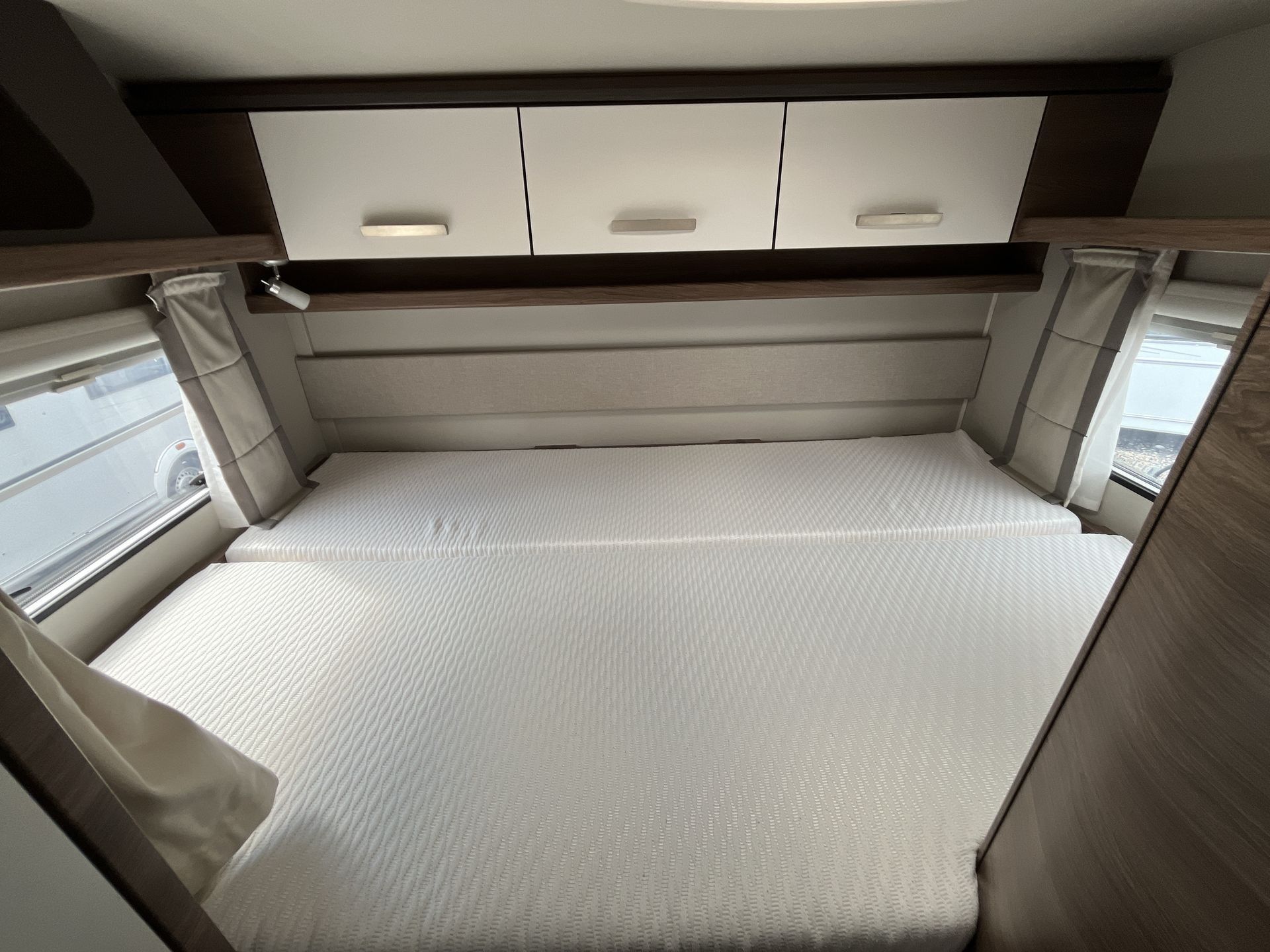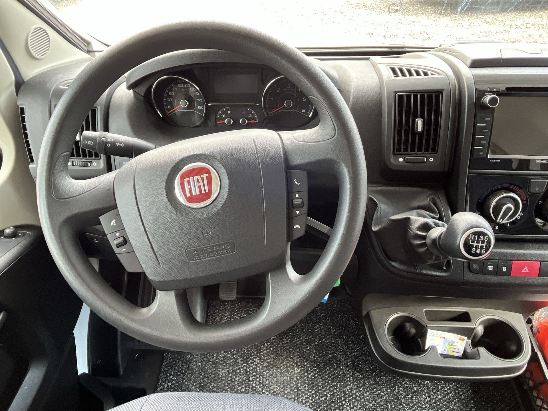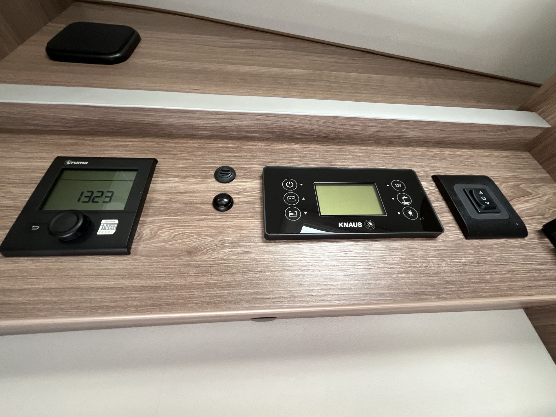 Bohatá výbava: motor 150 PS (bez AdBlue), motorová klimatizace, elektrická okna i zrcátka, tempomat, 2x airbag, ovládání radia na volantu, remis žaluzie v kabině řidiče, moskytiéra ve vstupních dveřích, Truma iNet systém, digitální panel Truma CP Plus, izolovaná a vyhřívaná odpadní nádrž, střešní okno Midi Heki s osvětlením, posuvný žebřík alkovny, levé dveře garáže, levé zadní okno, rezervní kolo, nádrž nafty 90 l, DuoControl Truma CS, 190 l lednice