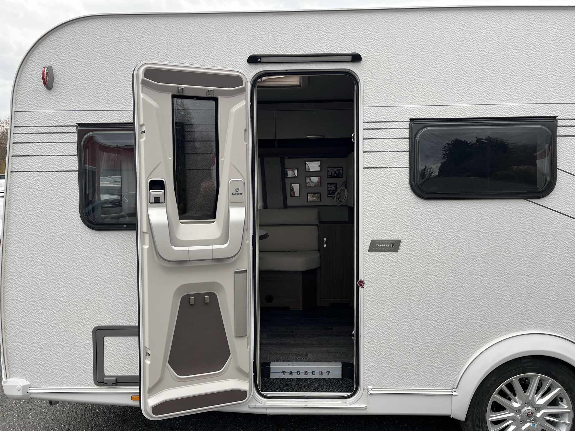 NÁSTAVBA: záruka těsnosti nástavby 10 let, vstupní dveře Tabbert Trend, integrovaný vstupní schůdek s logem Tabbert, systém jednoho klíče, Tabbert ServiceBox, vnější uzamykatelná servisní klapka levá a pravá, skříňka na plynové láhve s ocelovou podlahou (2x11 kg), okna s kombinovanými roletkami (zatemňovací + moskytiéra), vyklápěcí tónovaná okna se skvělou izolační schopností, střešní ventilátor (zadní), 2x střešní okno 40x40 cm s kombi roletkou, střešní okno 28x28 cm s moskytiérou na WC, okno 52x50 cm s kombinovanou roletkou na WC, GFK střecha se zvýšenou odolností proti kroupám, boční stěny z profilovaného plechu "Cool Grey", zadní světla Tabbert, LED vnější osvětlení