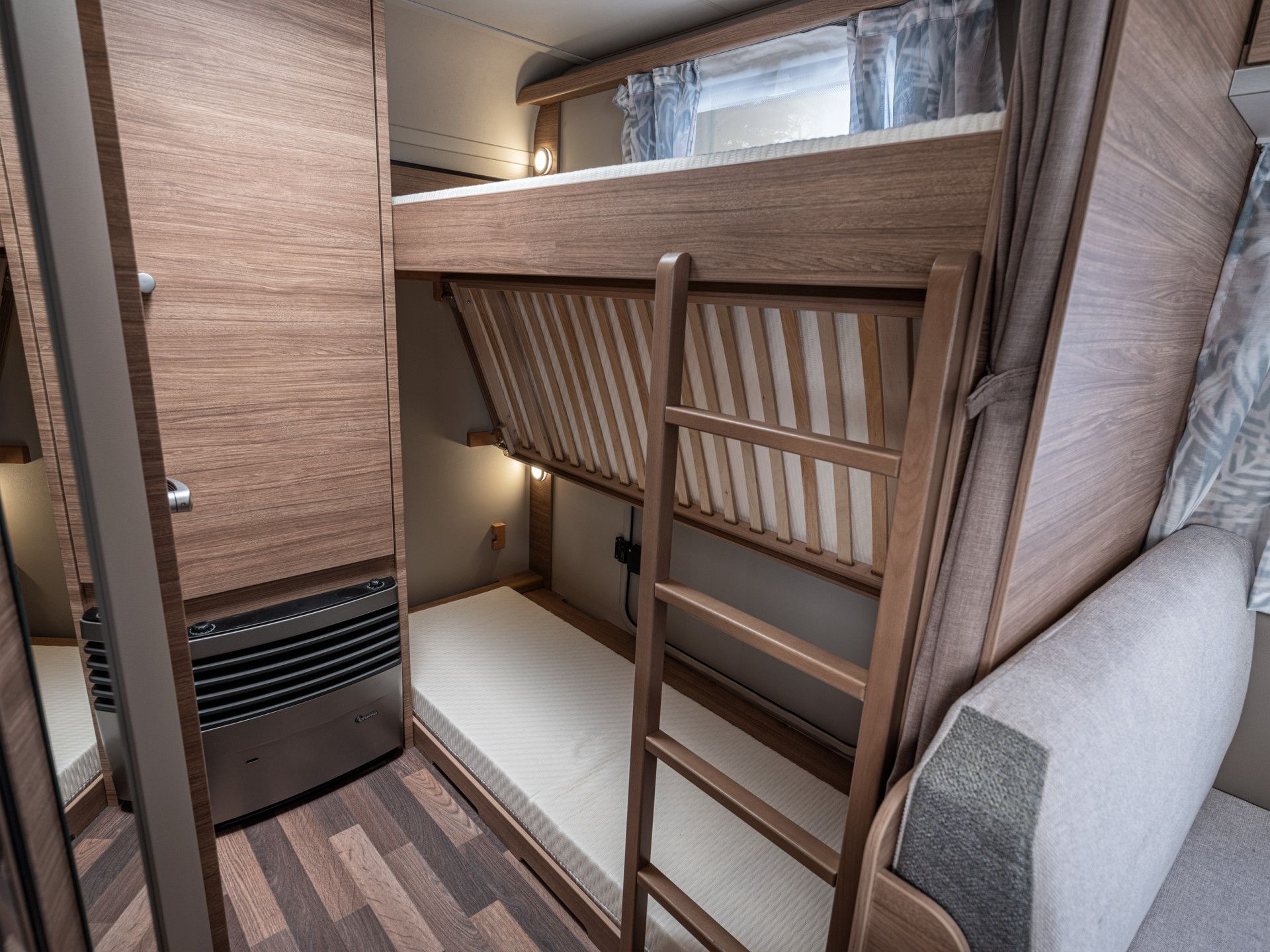 Příplatková výbava v ceně karavanu: garážové dveře 100x120 cm levé, kryt oje, servisní klapka 100x40.5 cm přední pravá, držák rezervního kola v prostoru na plynové láhve, navýšení celkové hmotnosti na 1 700 kg, ocelové rezervní kolo vč. zvedáku, opěrné kolo s integrovaným ukazatelem zatížení, rozšíření pracovní desky v kuchyňce, stmívatelné ambientní osvětlení, multifunkční dvojpalanda