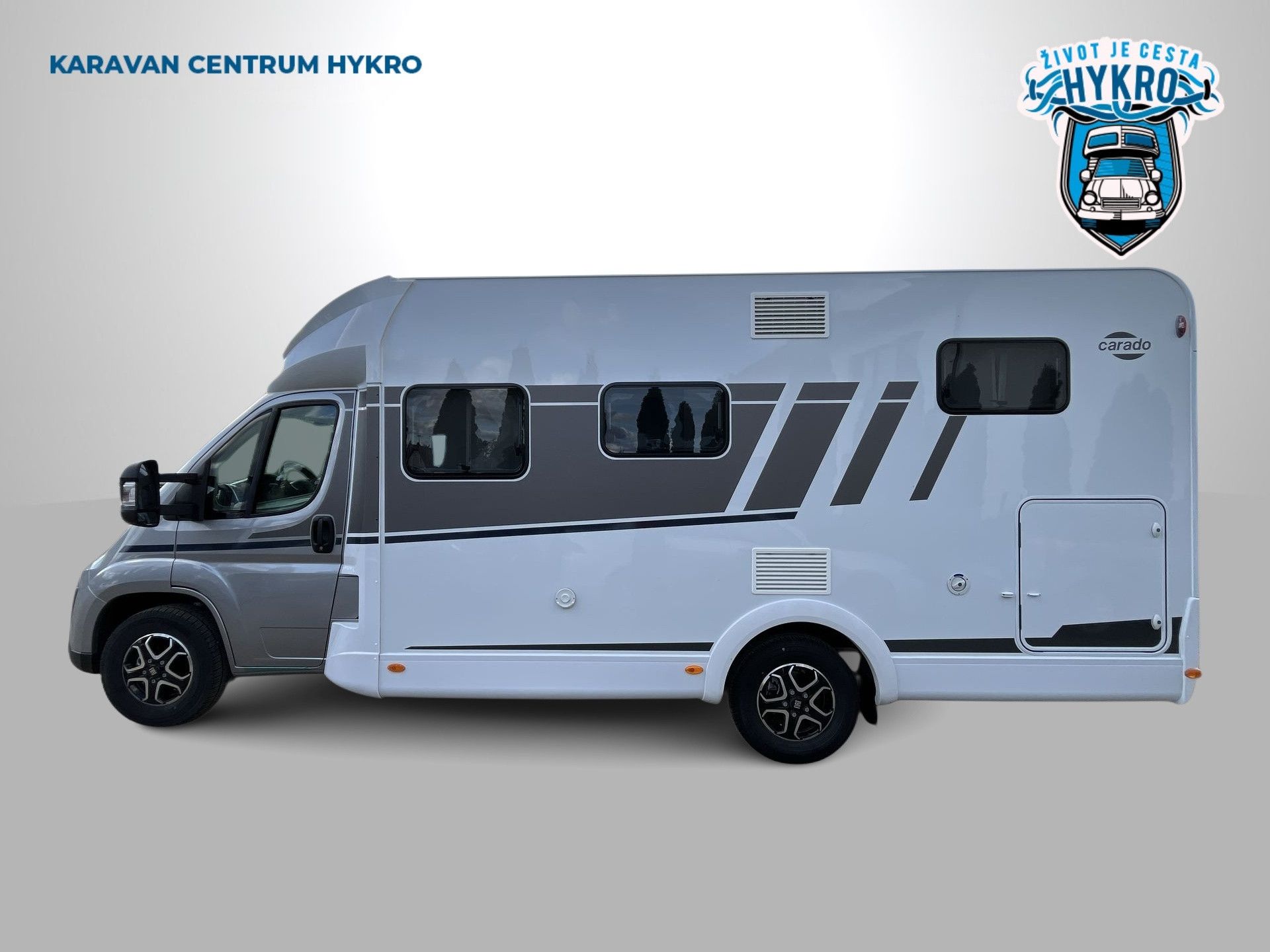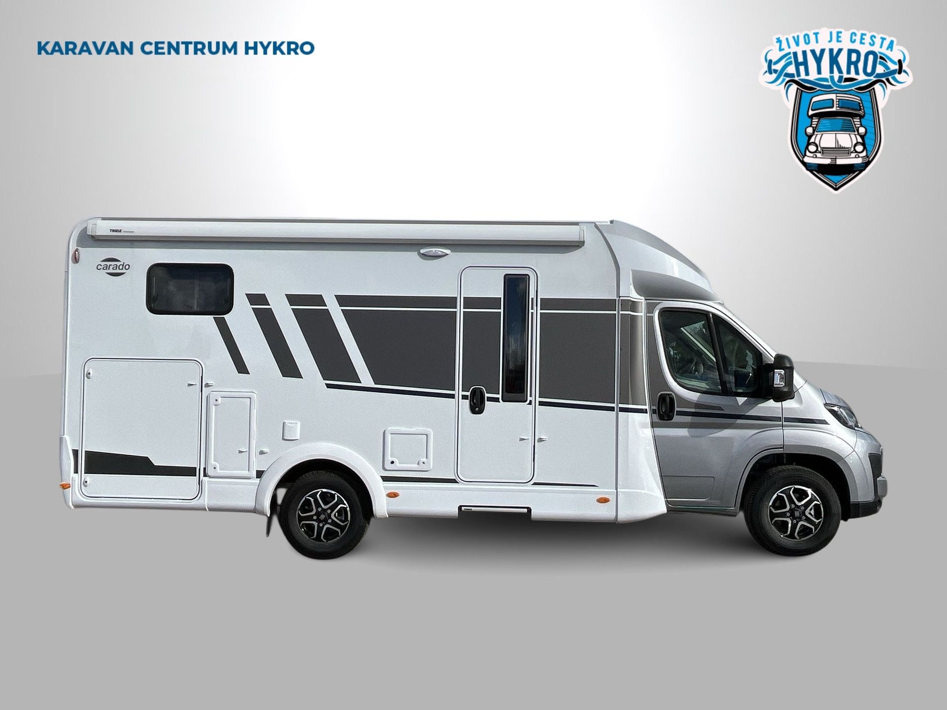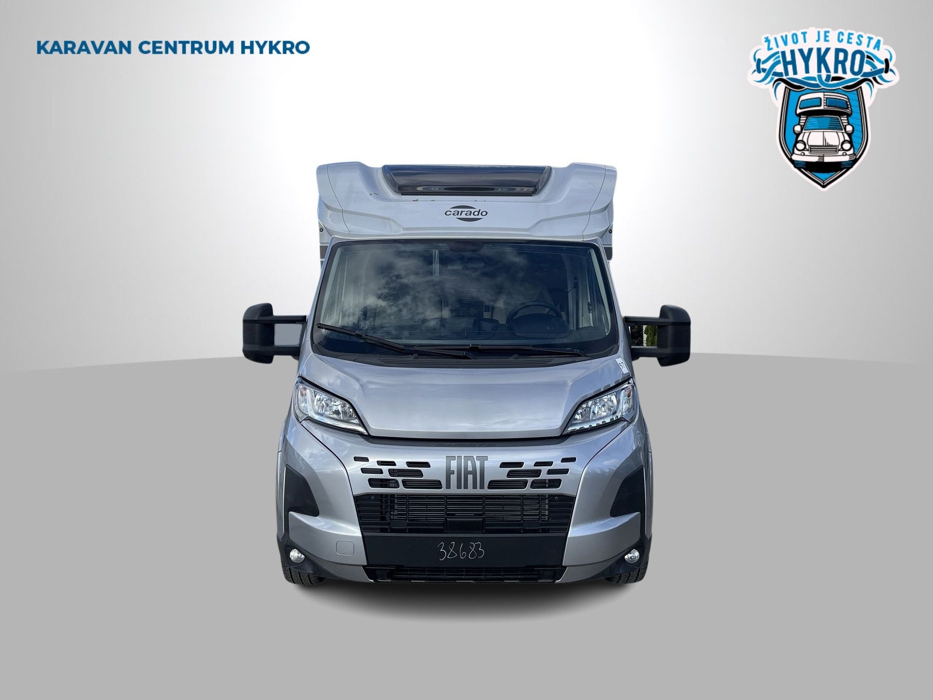 PRO+ FIAT PAKET: OPTIC PACK 1, kabiny v odstínu Artense Grey, panoramatické okno nad kabinou řidiče, rámová okna, druhé garážové dveře, polepy Carado Alternative, izolovaná odpadní nádrž, polepy PRO+, markýza 4m bílá, skládací zatemňovací roleta v kabině řidiče, BASIC PACK
