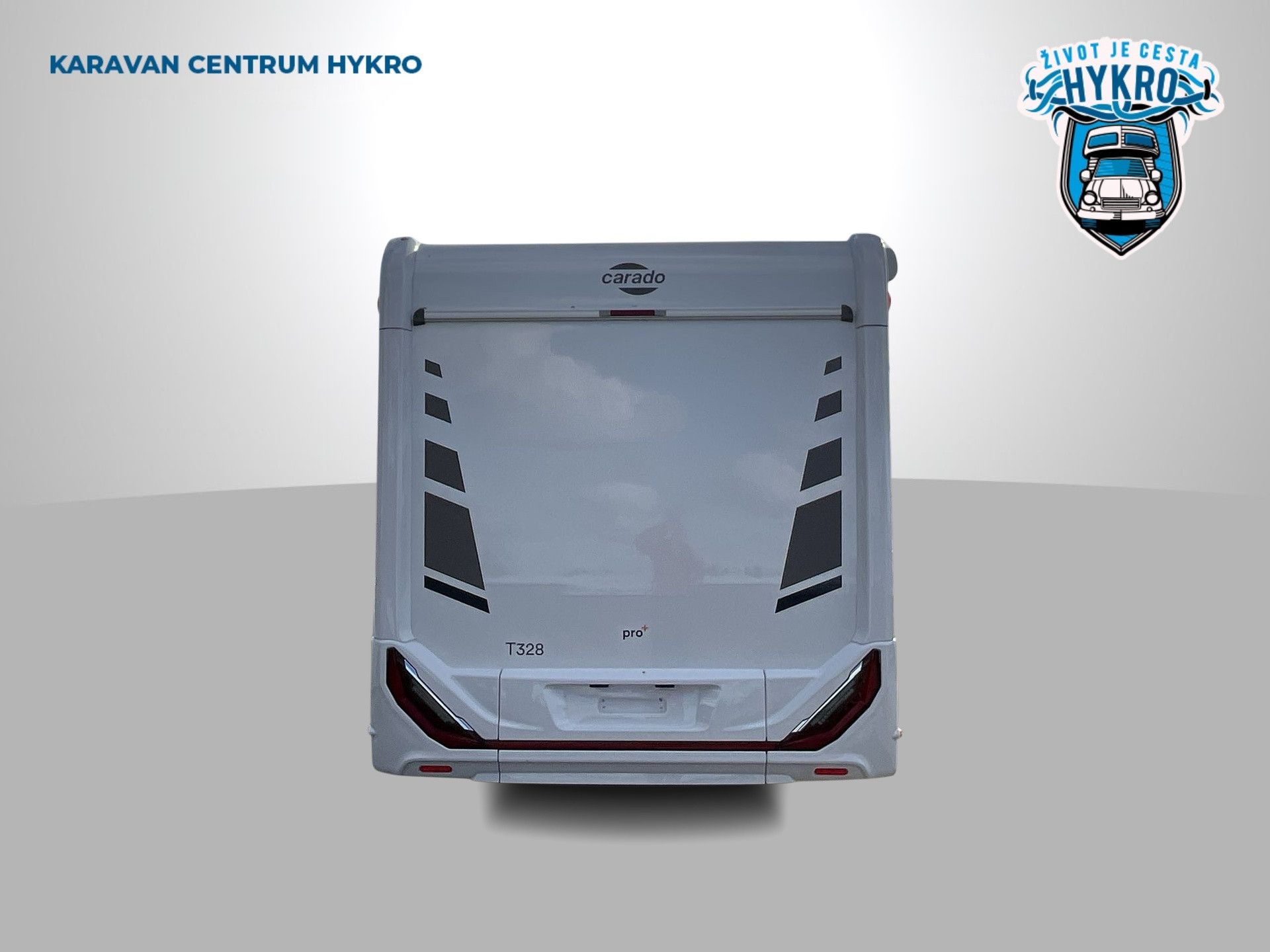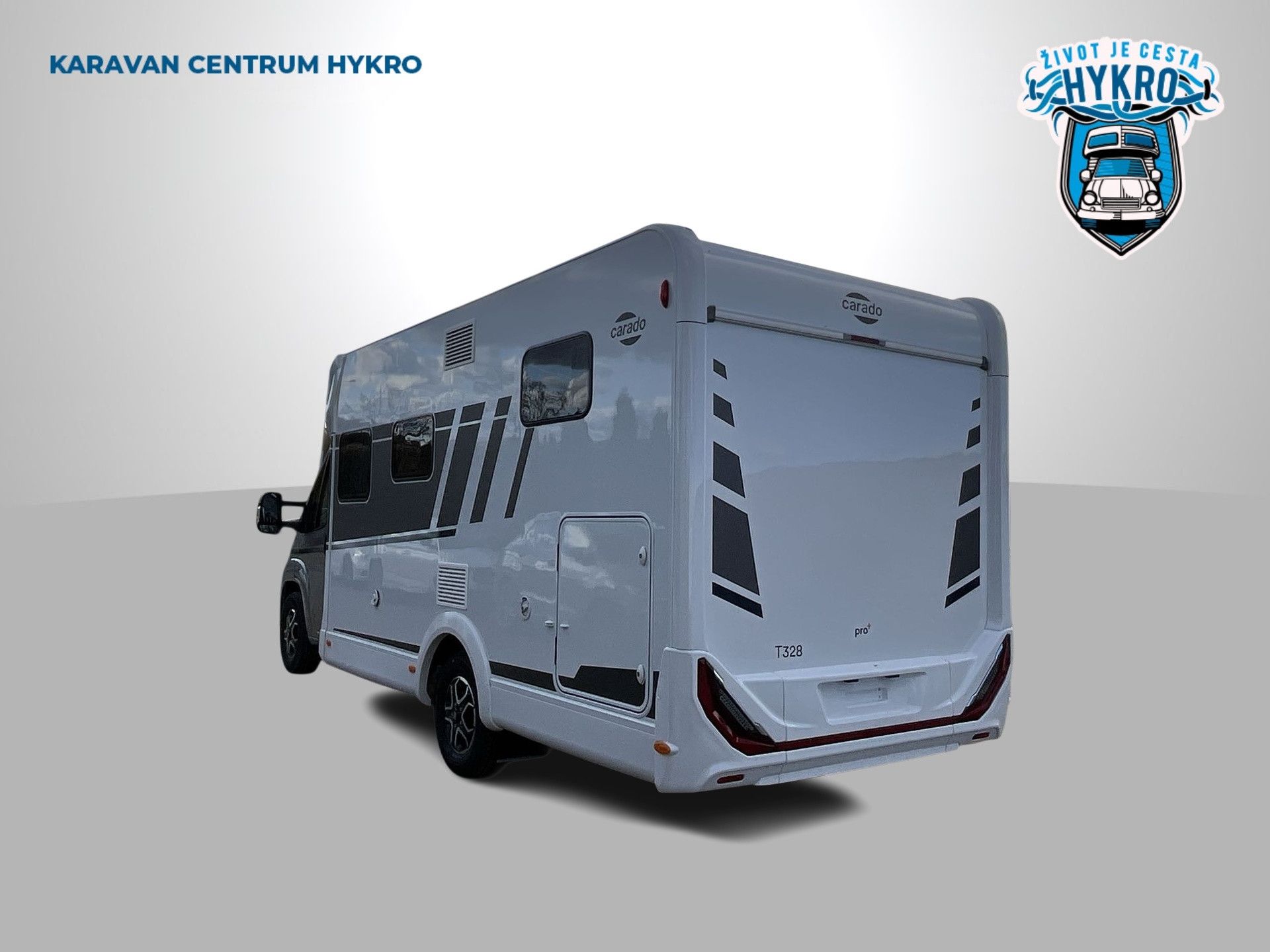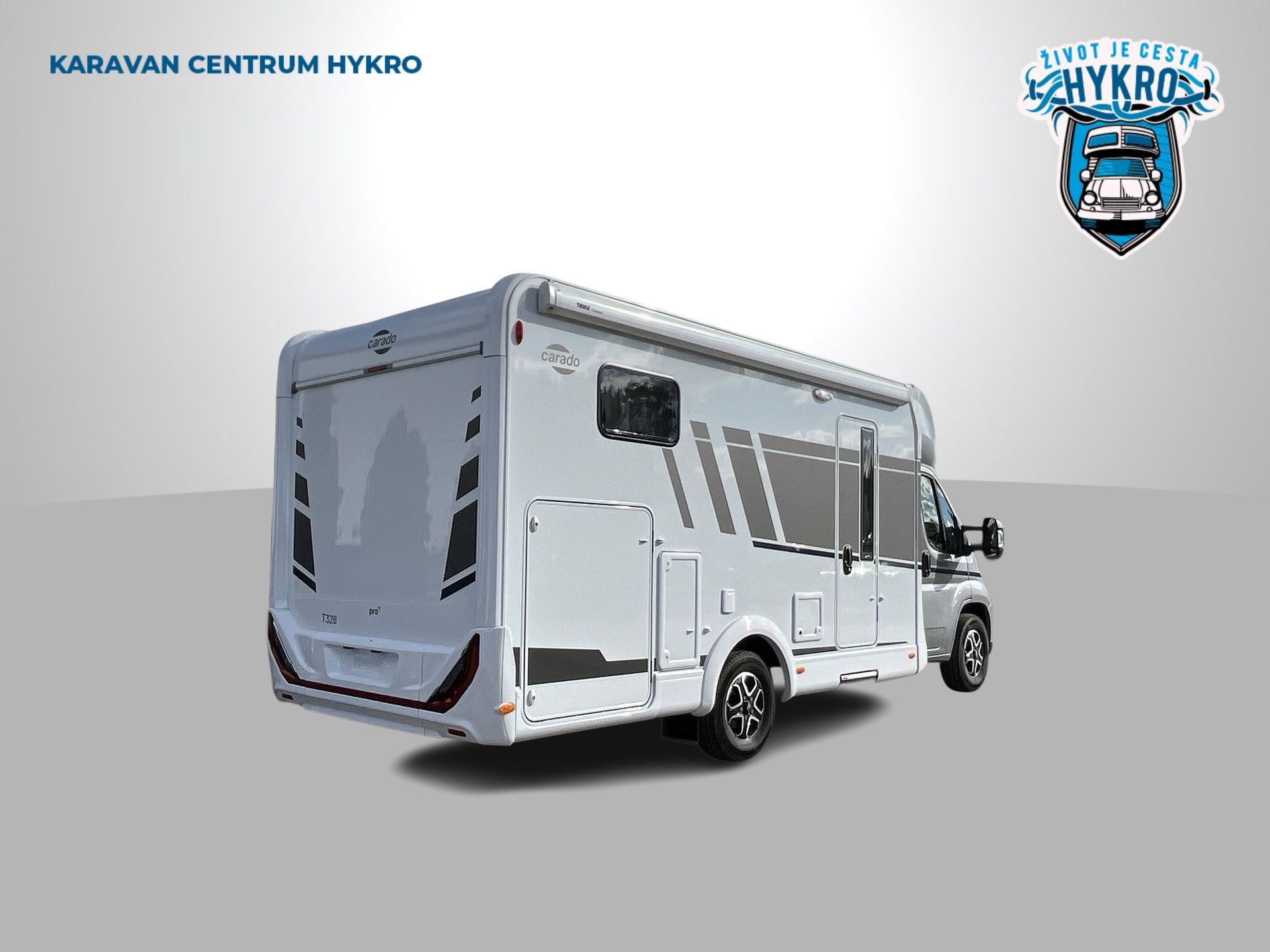 Rodinný polointegrovaný obytný vůz Carado T328 na podvozku Fiat Ducato pro 5 osob na jízdu a pro 4-5 osob na spaní skladem ihned k odběru.