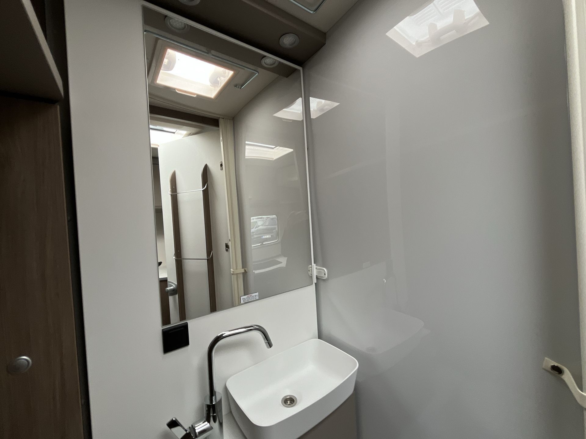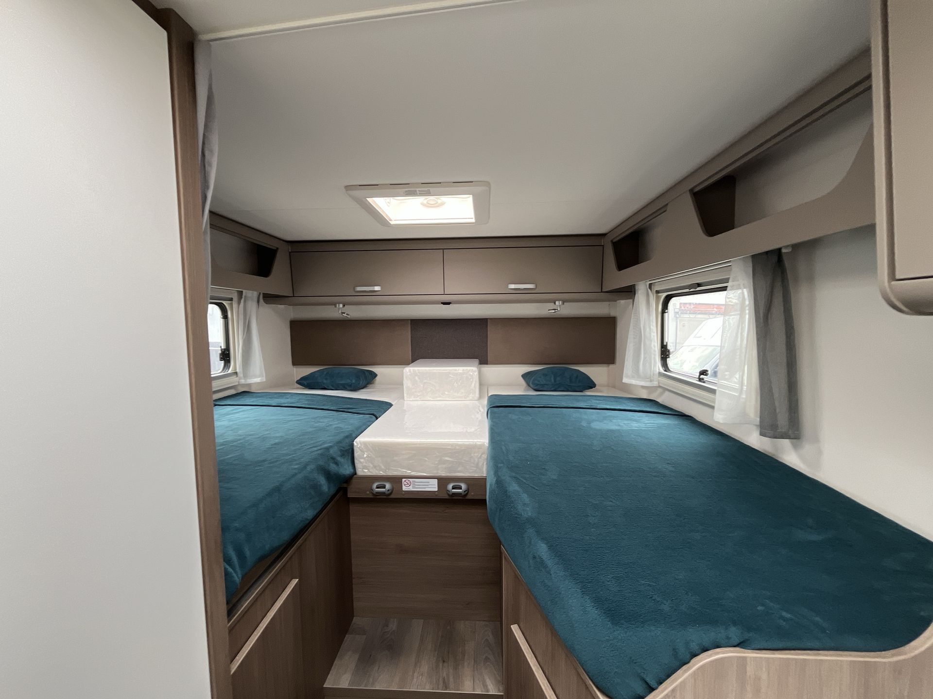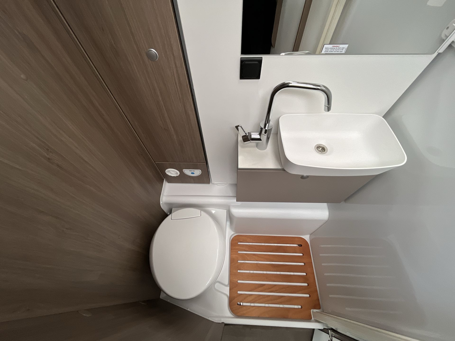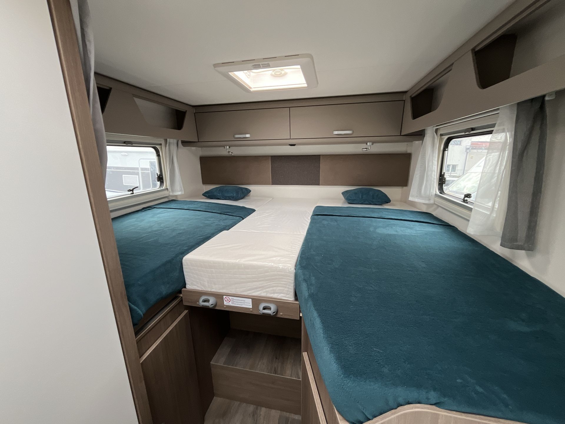 Přední otočná sedadla Captain Chair, airbag řidiče a spolujezdce, motorová klimatizace manuální, tónovaná a elektricky ovládaná okna v kabině řidiče, centrální zamykání dveří v kabině řidiče, palubní počítač s ukazatelem vnější teploty, DAB anténa ve zpětném zrcátku, držák na telefon / tablet vč. USB zásuvky, dojezdová sada pro pneu Fix & Go Kit, příprava rádia vč. 4 reproduktorů, přední nárazník v barvě vozidla, 7 let záruka na těsnost nástavby, střecha a zadní stěna odolná proti krupobití, polohovatlená dvojitá boční okna s roletou a sítí proti hmyzu, prostorná garáž se zatížením 150 kg, elektrický vstupní schůdek, LED osvětlení interiéru a exteriéru, výkonná baterie AGM 95 Ah pro obytnou část, kontrolní panel nástavby, vnitřní zásuvky 230V, vnější připojení pro 230V s jističem, USB zásuvka, centrální osvětlení u vstupních dveří, plynové topení Combi 6 s integrovaným 10 l bojlerem, kuchyňská deska s nerezovým dřezem a skleněným krytem, tříhořákový vařič s pojistkou hoření a se skleněným krytem, LEd osvětlení nad kuchyňskou linkou, pákové mísící baterie v kuchyni i koupelně, nádrž čisté vody vč. bojleru 122 litrů, odpadní nádrž 92 litrů, WC s elektrickým splachováním, skříňka se zrcadlem, integrované LED osvětlení, střešní okno s ochrannou síťkou, ergonomicky tvarované sedáky, komfortní matrace s odnímatelnými potahy na všech lůžkách, laťový rošt na pevných lůžkách, Isofix pro 2 sedačky.