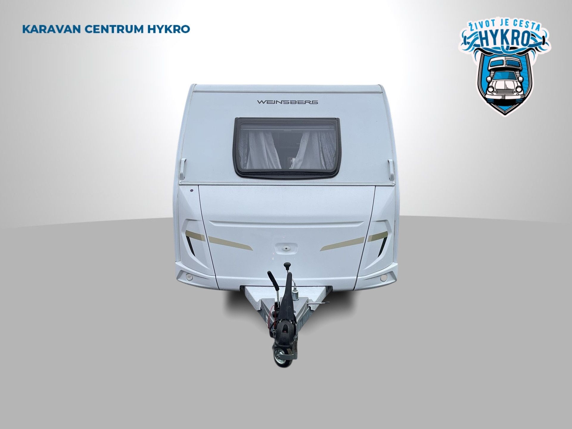 Obytný přívěs Weinsberg 420 QD s celkovou hmotností 1 200 kg skladem. Polstrování STONE WATER.