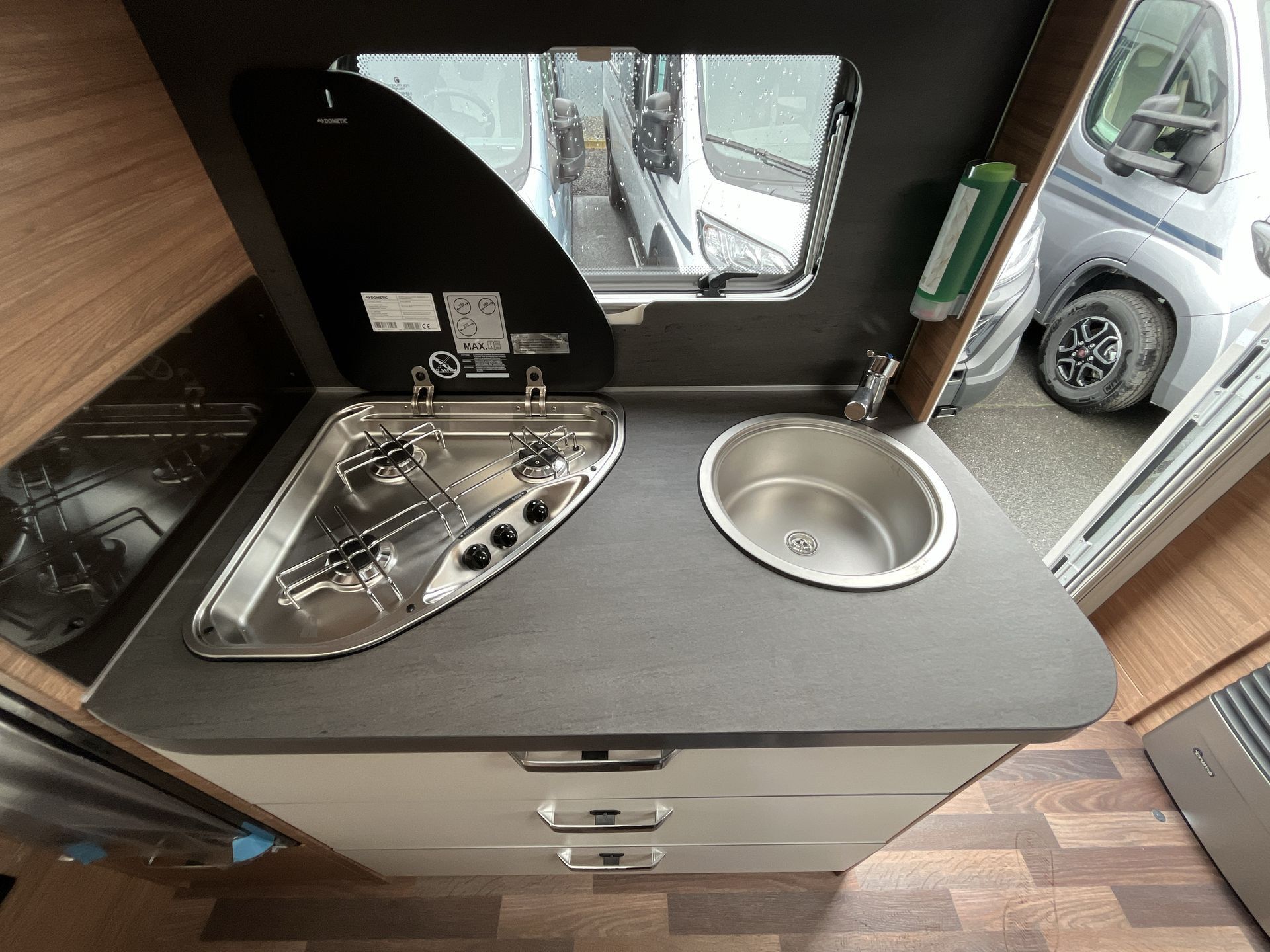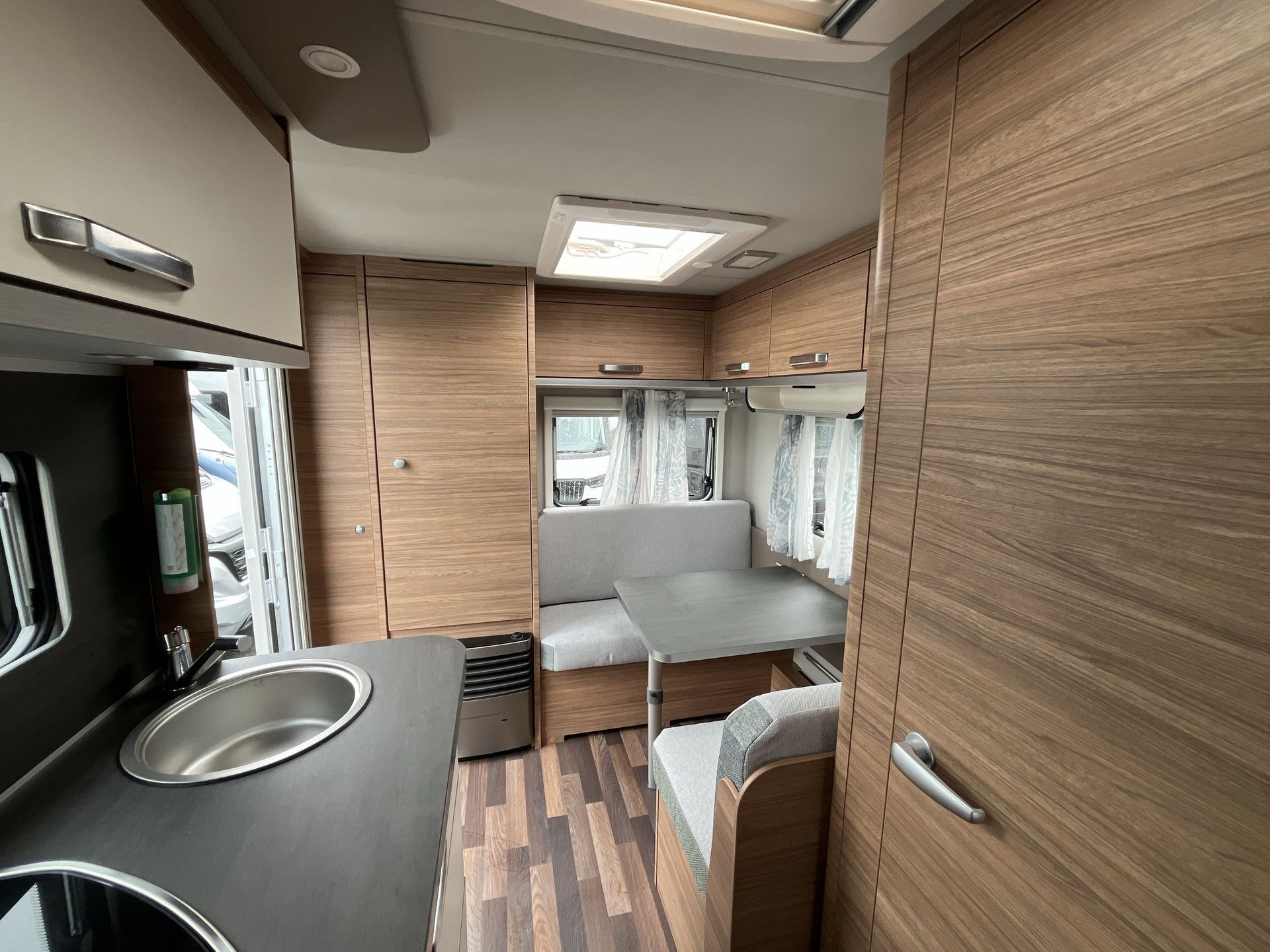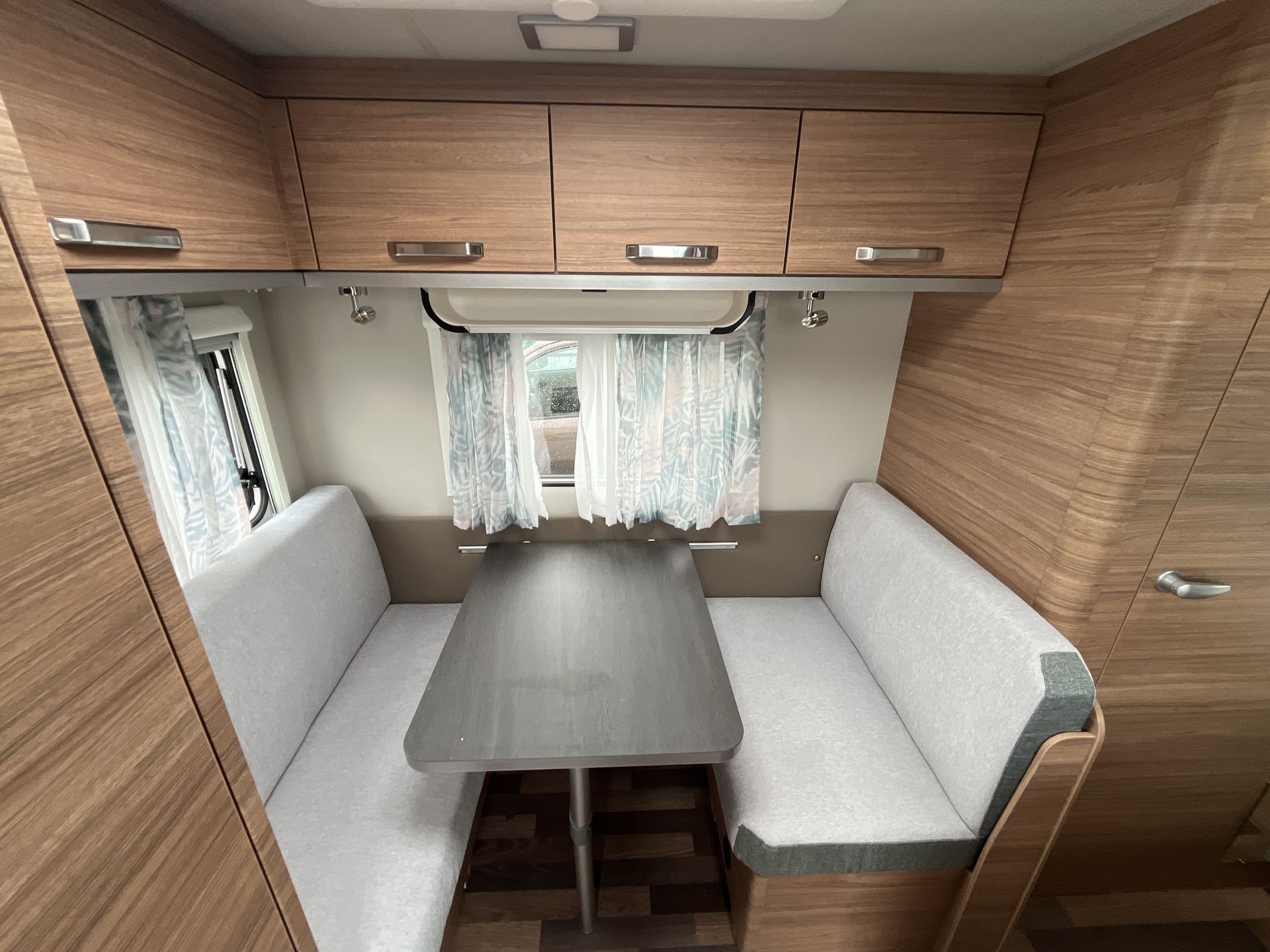 Extra výbava v ceně vozidla: kryt oje, servisní klapka 100x40.5 cm přední pravá, kombinované roletky v oknech, okno v přední stěně, střešní okno 40x40 cm uprostřed, navýšení celkové hmotnosti na 1 200 kg, stabilizátor závěsu, 17" lité rezervní kolo, rozšíření pracovní desky v kuchyňce, velká lednice 133 l, nádrž na vodu 45 l, vodní filtr "bluuwater", rozvod teplého vzduchu 12V, stmívatelné ambientní osvětlení, voucher MediKit, zásobník mýdla vč. náplně