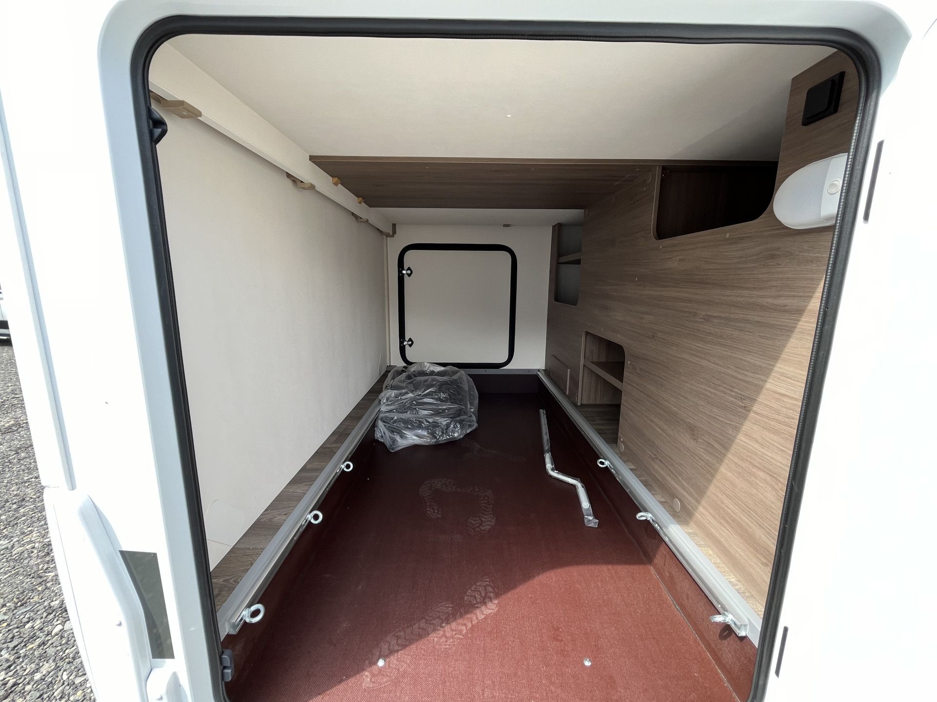 - Přední otočná sedadla Captain Chair, airbag řidiče a spolujezdce, motorová klimatizace manuální, tónovaná a elektricky ovládaná okna v kabině řidiče, centrální zamykání dveří v kabině řidiče, palubní počítač s ukazatelem vnější teploty, DAB anténa ve zpětném zrcátku, držák na telefon / tablet vč. USB zásuvky, dojezdová sada pro pneu Fix & Go Kit, příprava rádia vč. 4 reproduktorů, přední nárazník v barvě vozidla, 7 let záruka na těsnost nástavby, střecha a zadní stěna odolná proti krupobití, polohovatlená dvojitá boční okna s roletou a sítí proti hmyzu, prostorná garáž se zatížením 150 kg, elektrický vstupní schůdek, LED osvětlení interiéru a exteriéru, výkonná baterie AGM 95 Ah pro obytnou část, kontrolní panel nástavby, vnitřní zásuvky 230V, vnější připojení pro 230V s jističem, USB zásuvka, centrální osvětlení u vstupních dveří, plynové topení Combi 6 s integrovaným 10 l bojlerem, kuchyňská deska s nerezovým dřezem a skleněným krytem, tříhořákový vařič s pojistkou hoření a se skleněným krytem, LEd osvětlení nad kuchyňskou linkou, pákové mísící baterie v kuchyni i koupelně, nádrž čisté vody vč. bojleru 122 litrů, odpadní nádrž 92 litrů, WC s elektrickým splachováním, skříňka se zrcadlem, integrované LED osvětlení, střešní okno s ochrannou síťkou, ergonomicky tvarované sedáky, komfortní matrace s odnímatelnými potahy na všech lůžkách, laťový rošt na pevných lůžkách, Isofix pro 2 sedačky.