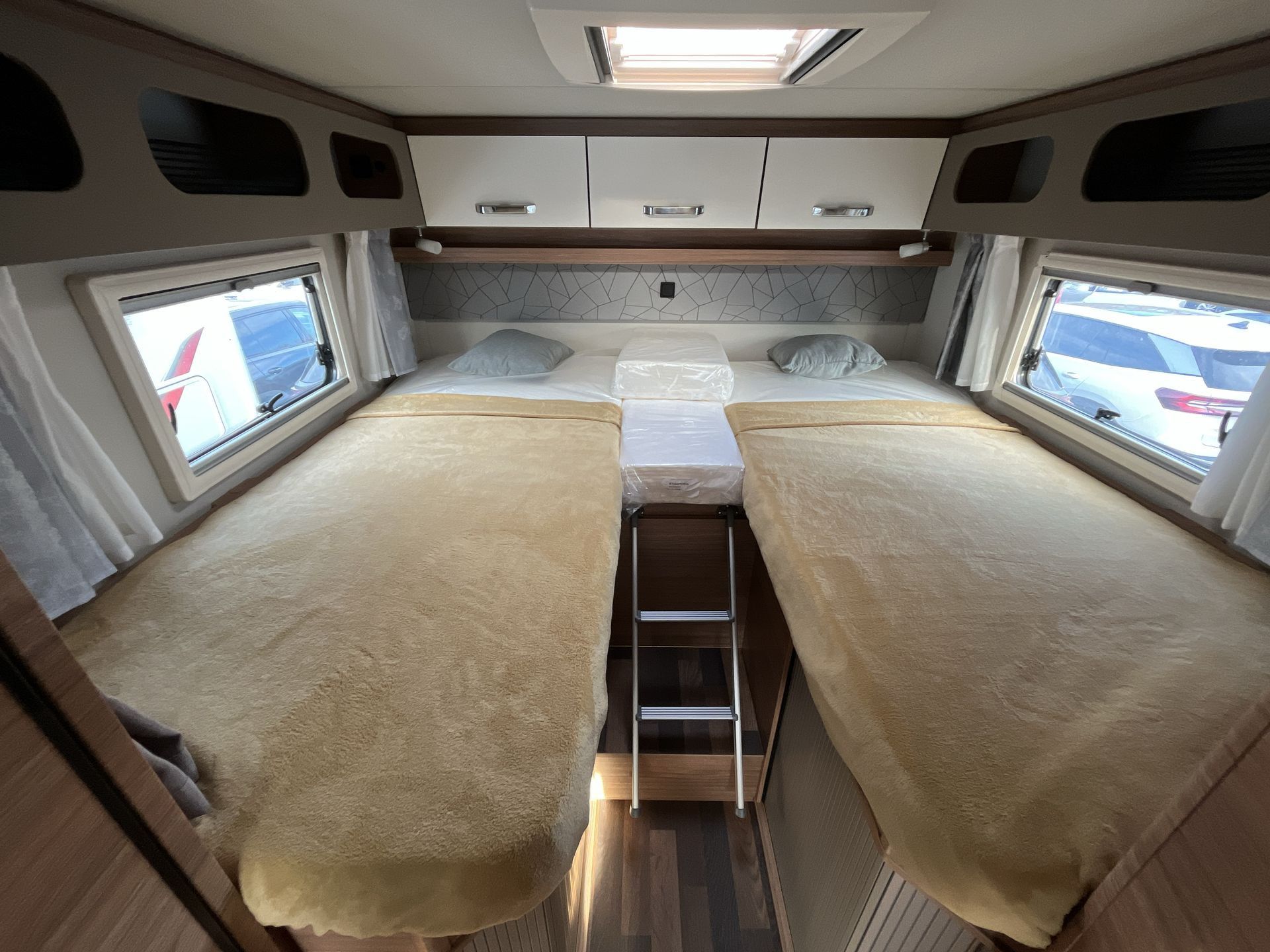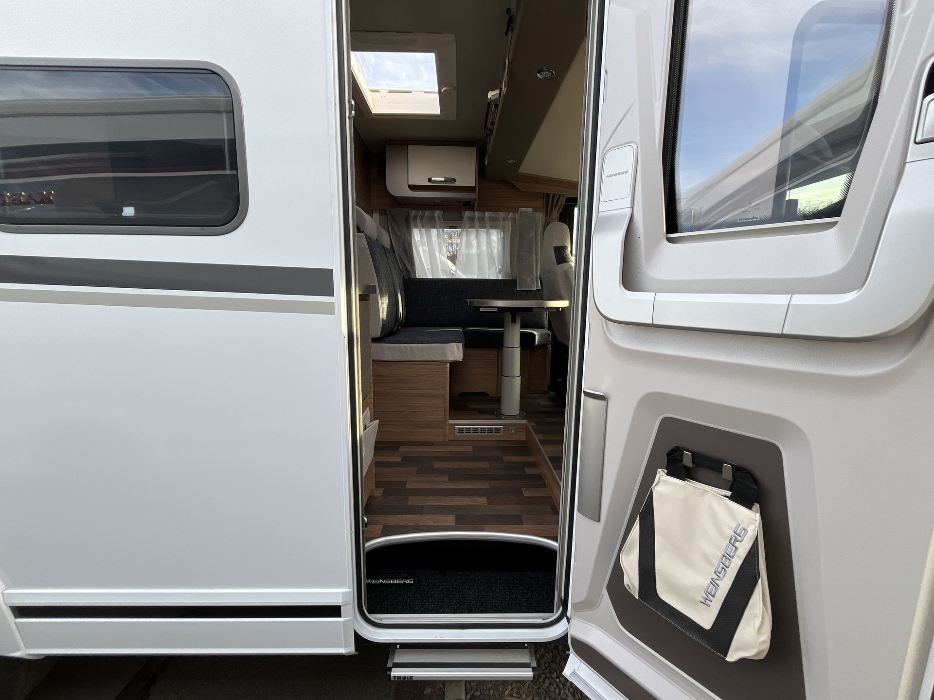 SMART PAKET IV: potahy předních sedadel v designu Weinsberg, izolovaná a vyhřívaná odpadní nádrž, zatemňovací rolety v kabině řidiče, střešní okno 70x50 cm s kombinovanou roletkou