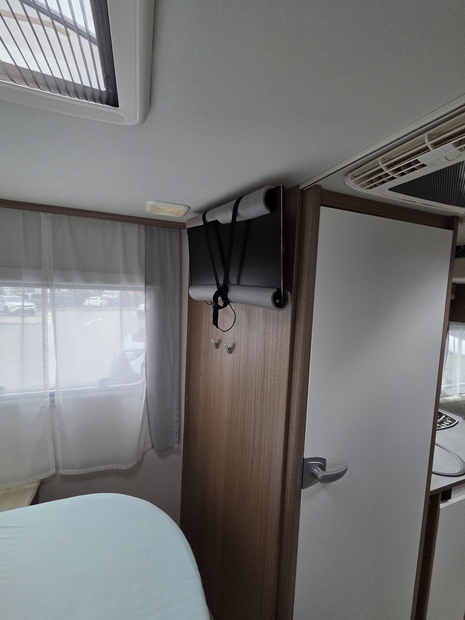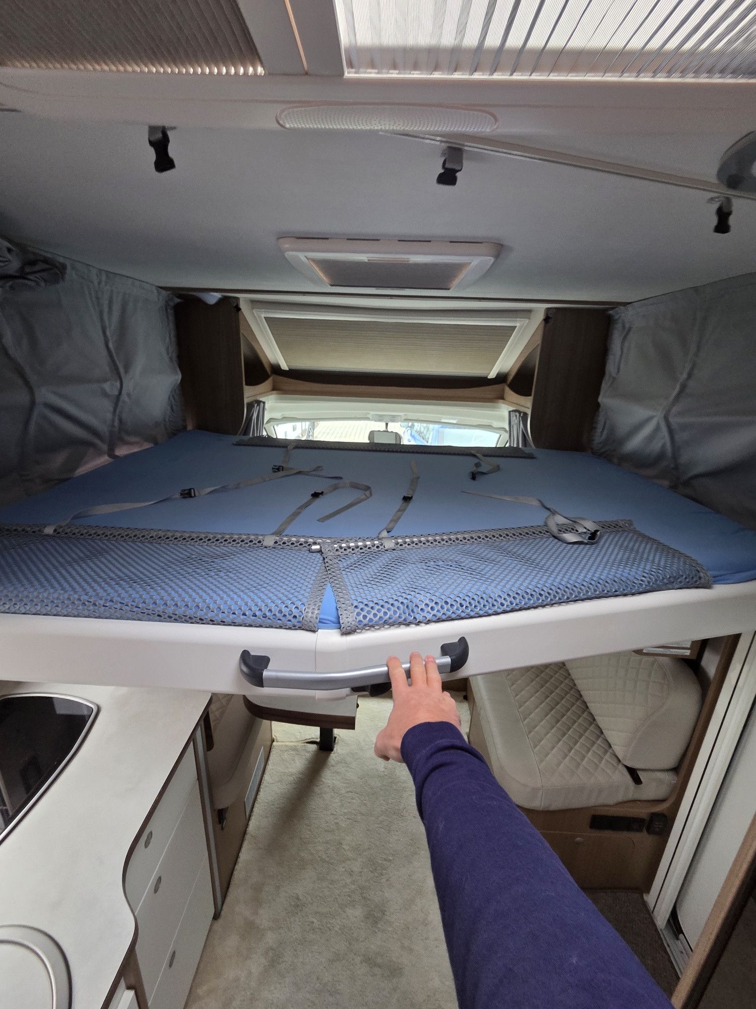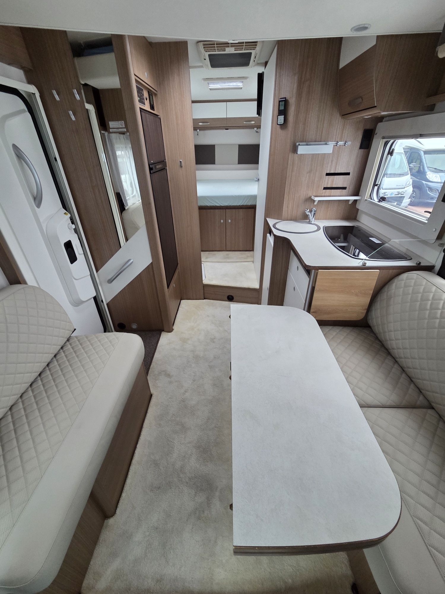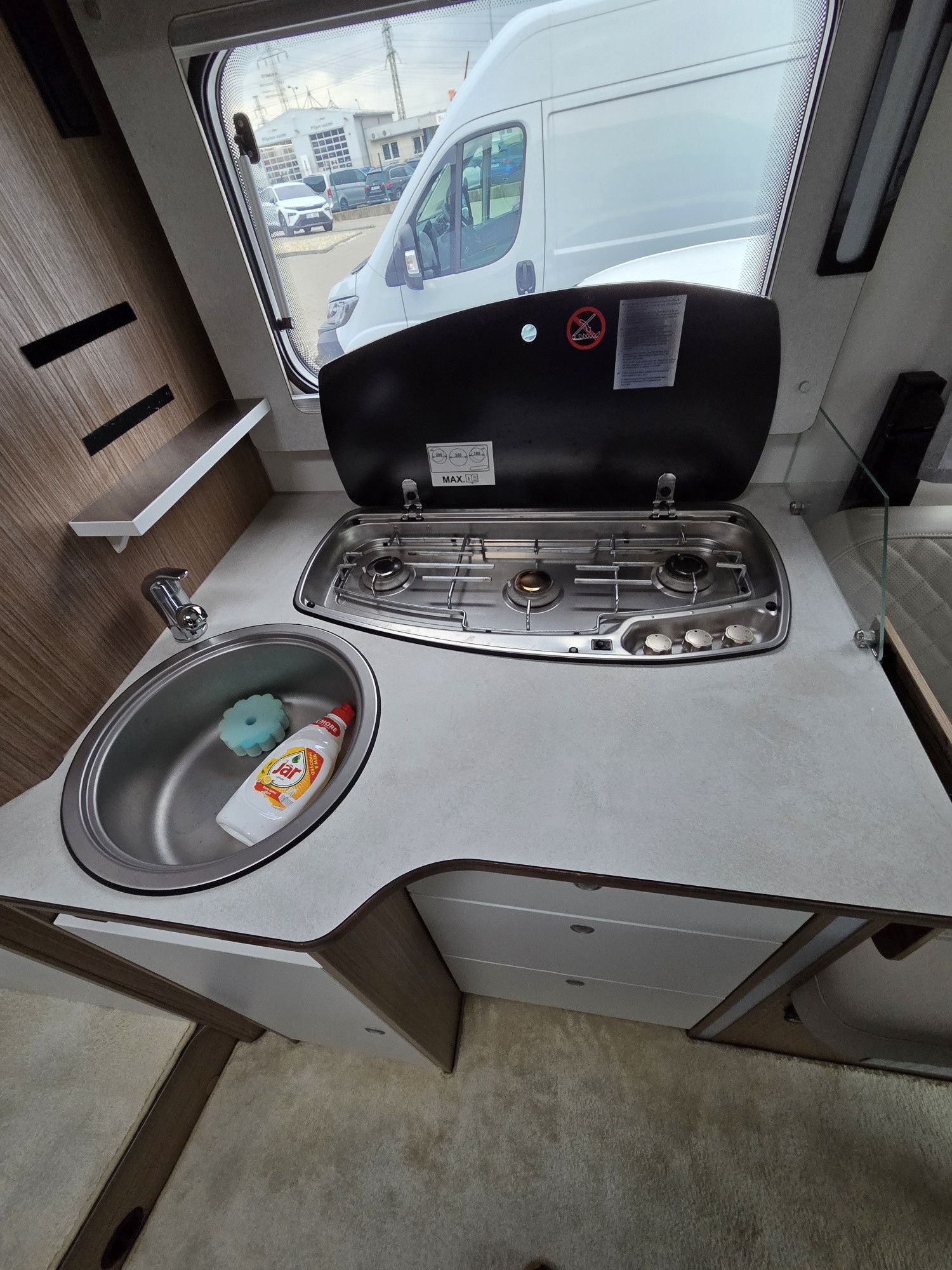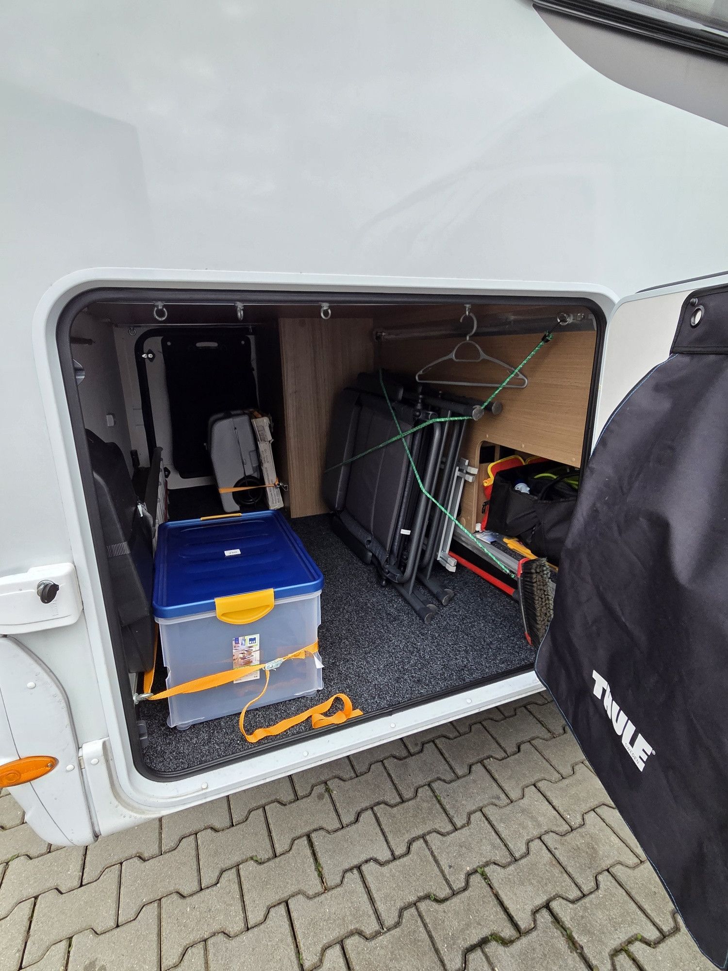 Výbava vozu: střešní klimatizace, zpětná kamera s monitorem v zrcátku, multimedia zenec s naviagací, zadní vzduchové odpužení, hydraulické stabilizační vzpěry, venkovní přípjka plynu, měnič napětí 12V/230V, markýza, nosič na 2 kola, smart TV, solární komplet, vnější a vnitřní bezpečnostní zámky dveří