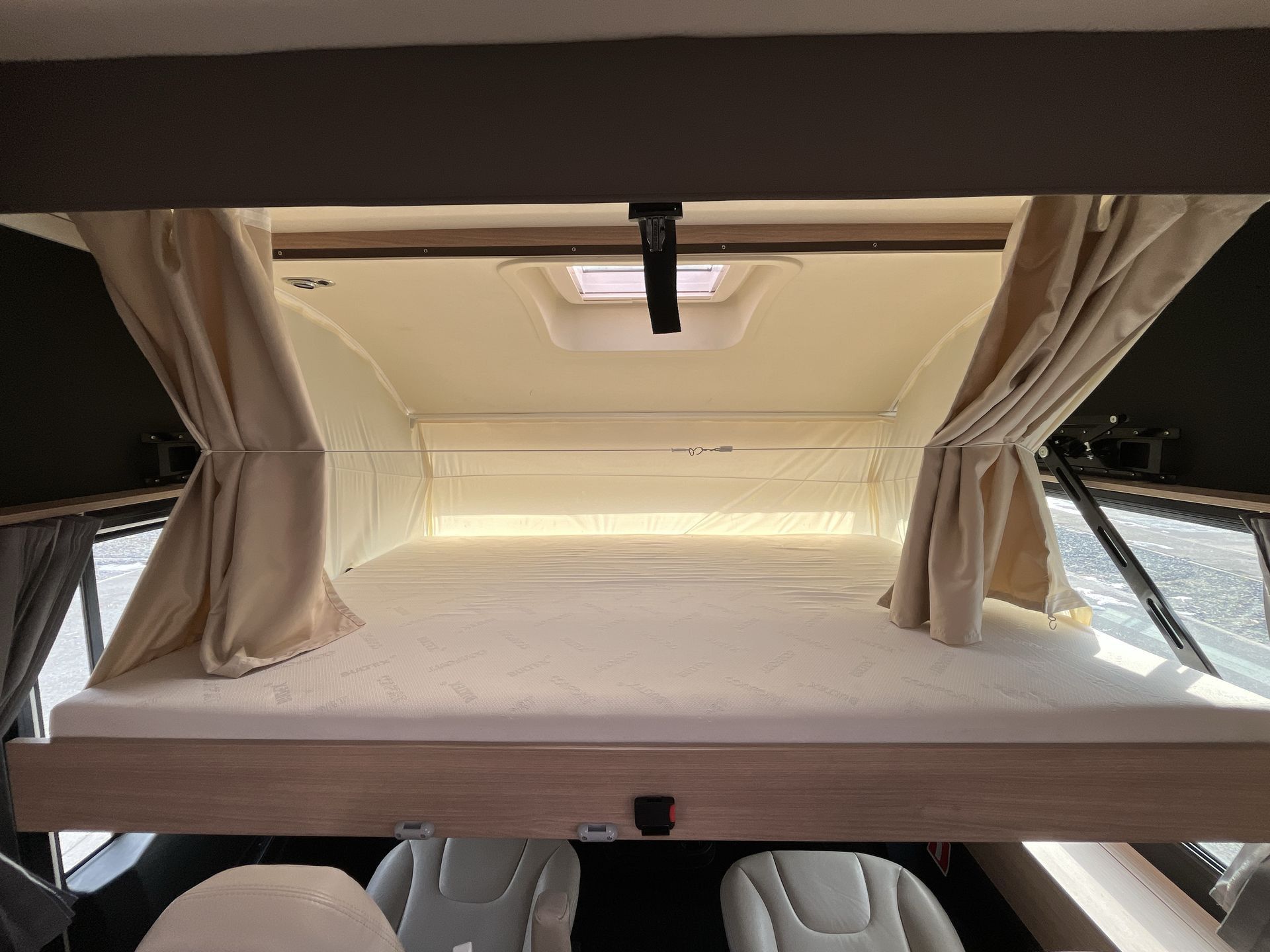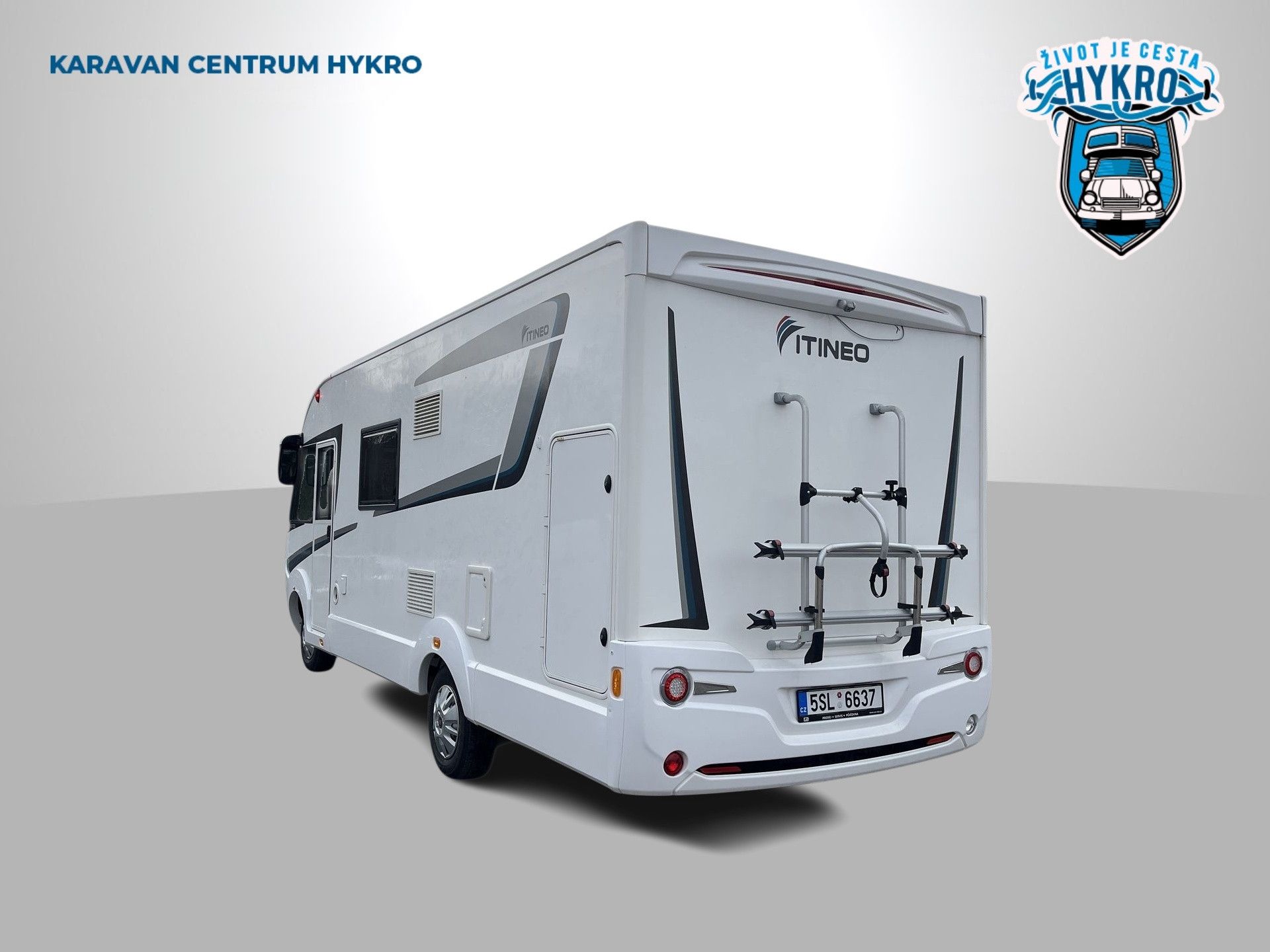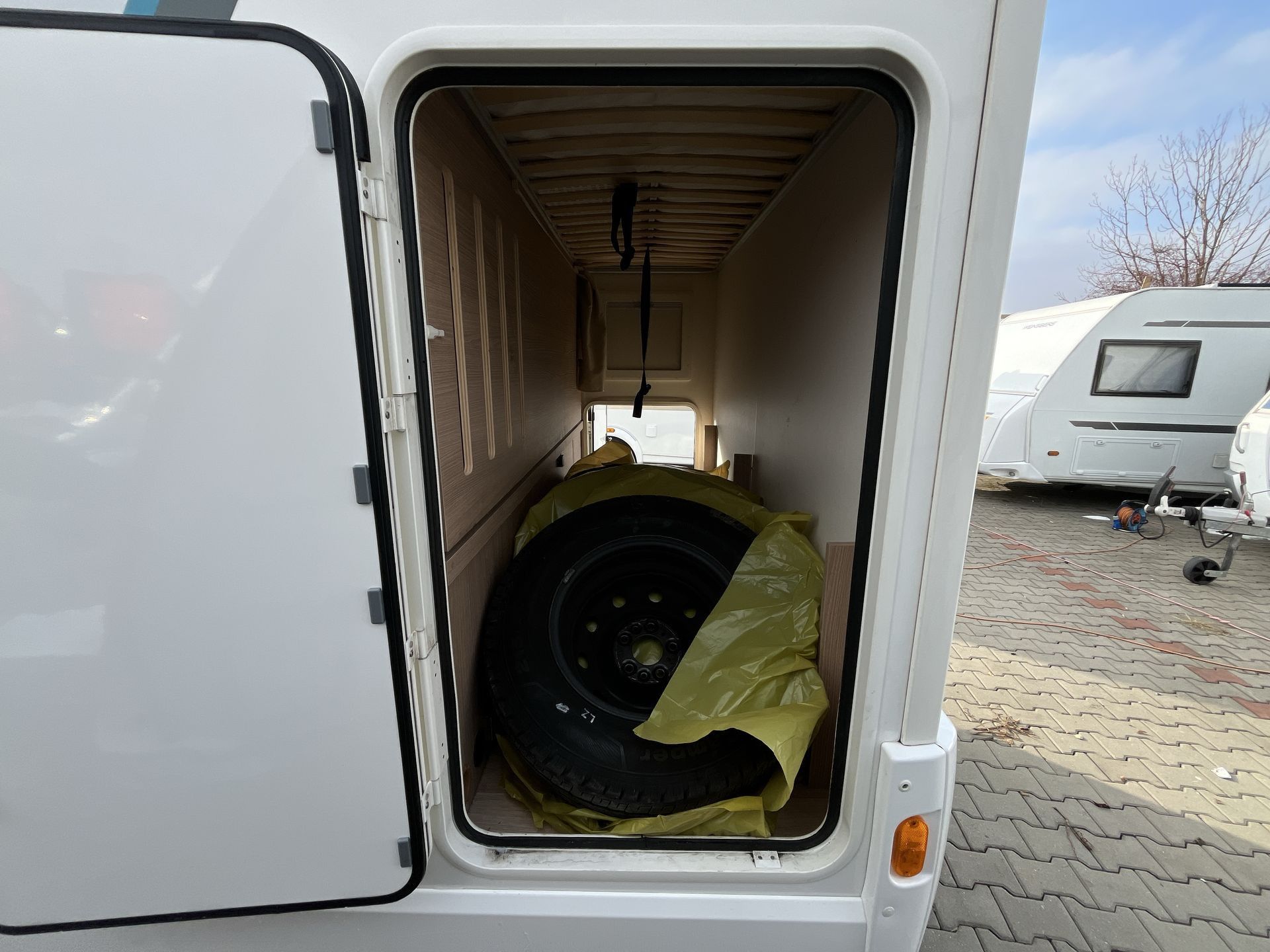 Výbava: kožené čalounění, měnič 12V / 230 V / 600 W, solární panel + 2x baterie, multimediální rádio Alpine (vč. TV), markýza Fiamma, nosič na 2 kola, TV Finlux, DuoControl, couvací kamera, vnější tepelná izolace na čelní sklo a okna kabiny, alarm od Jablotronu jako bonus