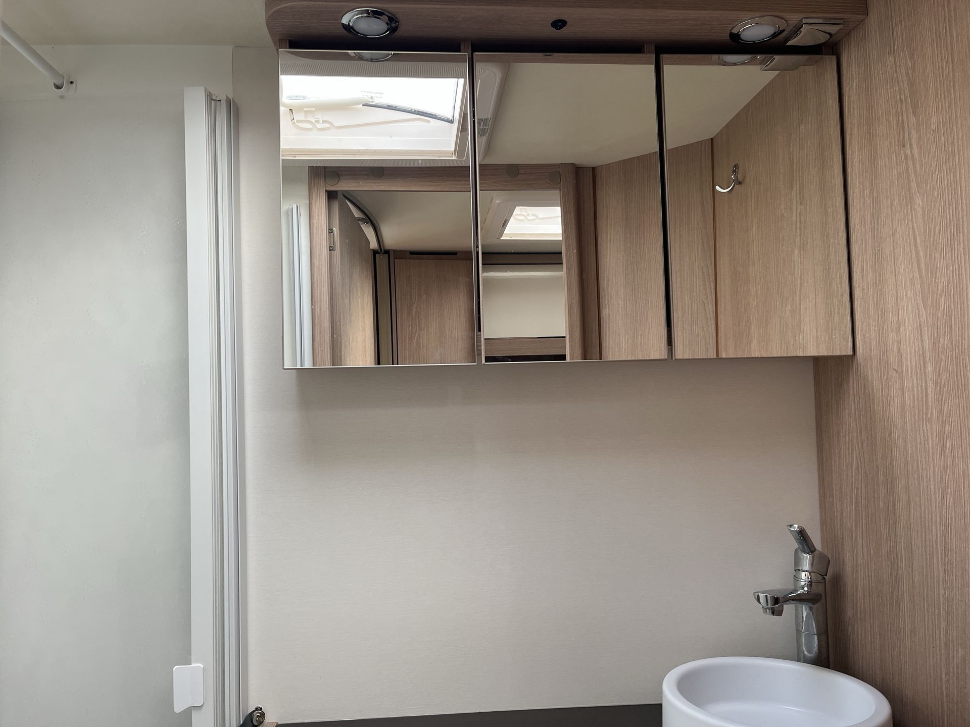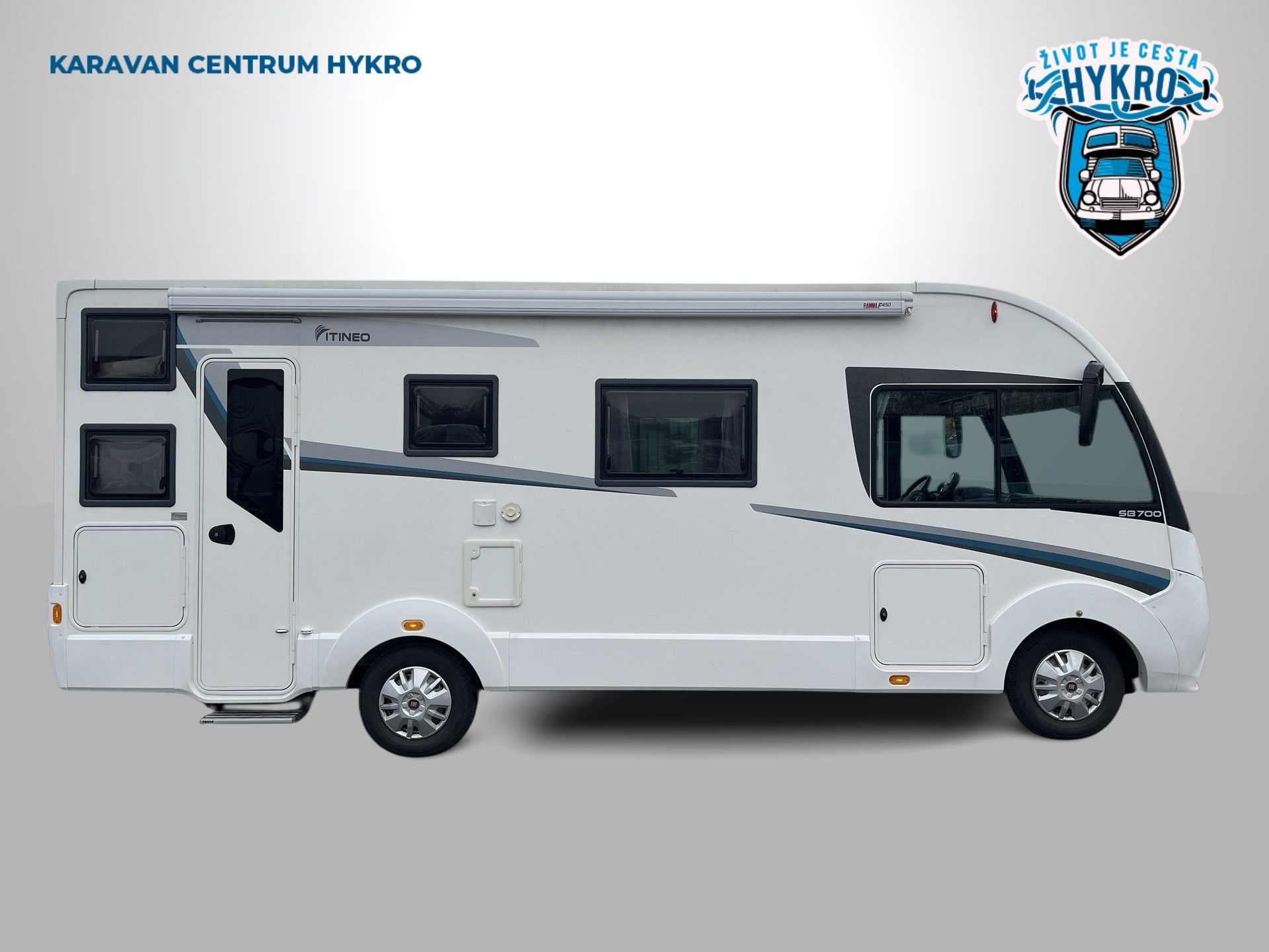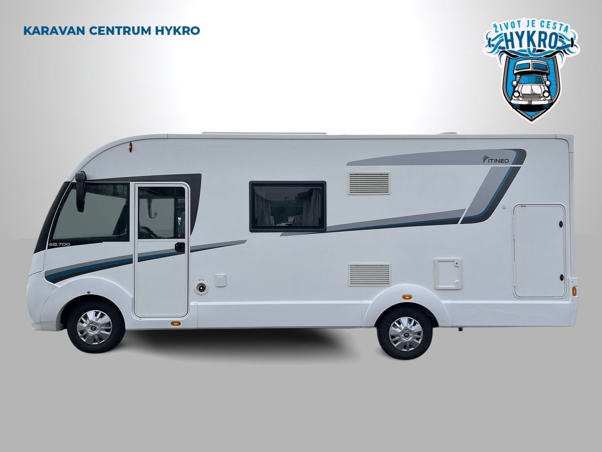 Výbava: kožené čalounění, měnič 12V / 230 V / 600 W, solární panel + 2x baterie, multimediální rádio Alpine (vč. TV), markýza Fiamma, nosič na 2 kola, TV Finlux, DuoControl, couvací kamera, vnější tepelná izolace na čelní sklo a okna kabiny, alarm od Jablotronu jako bonus