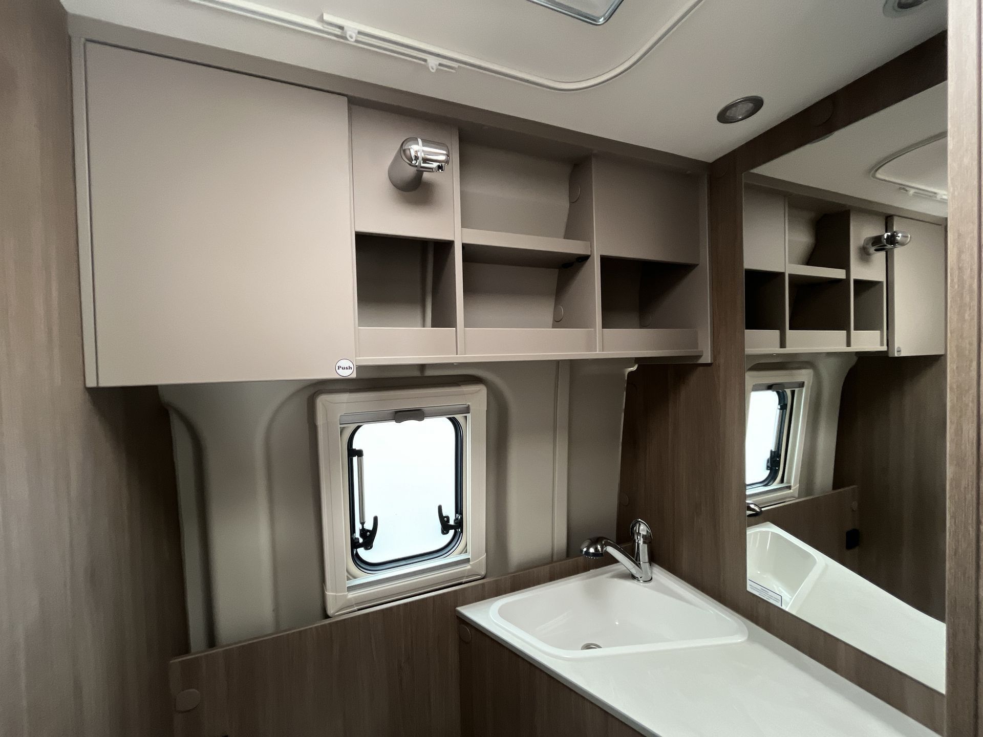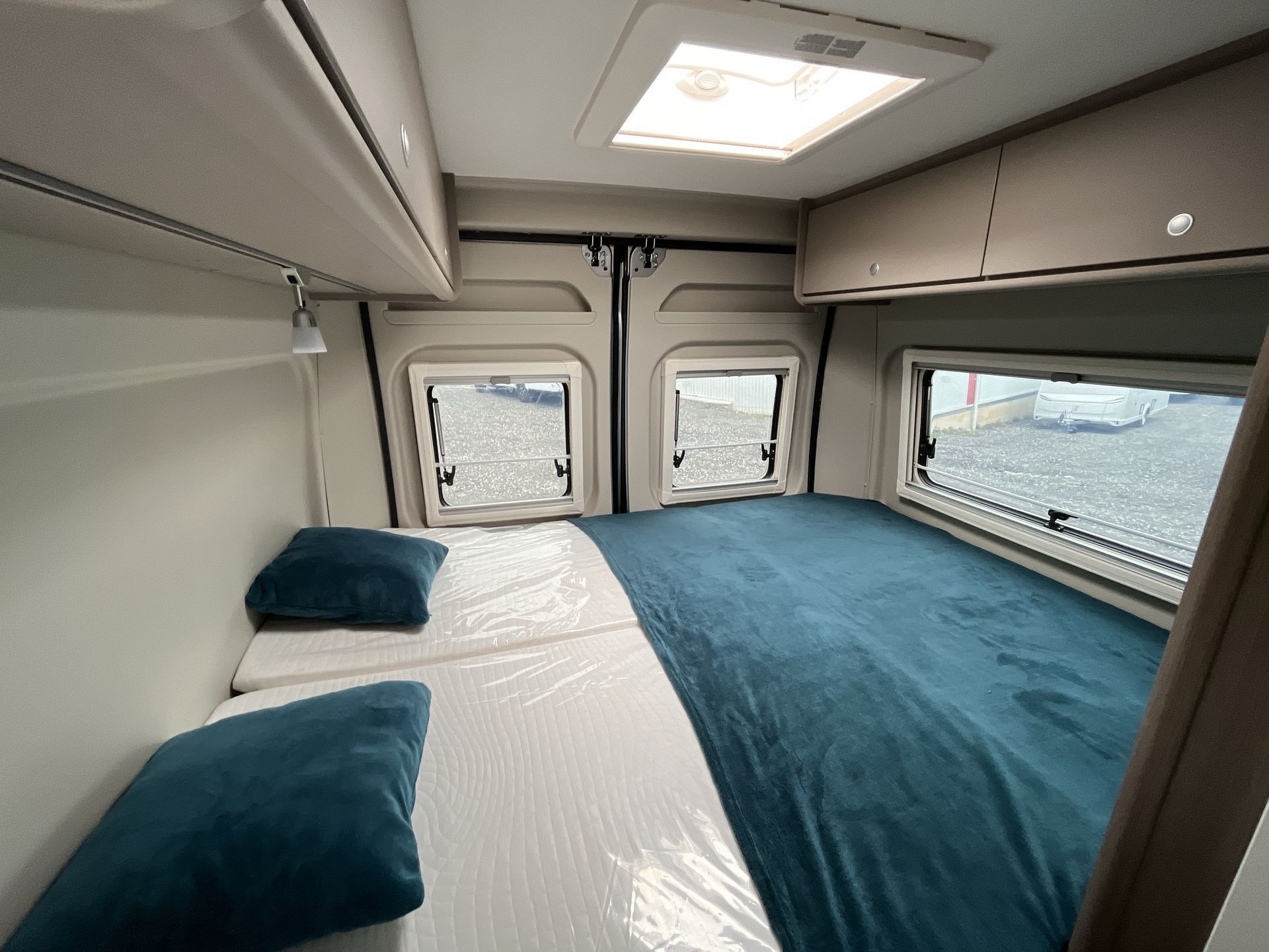 Basic Paket: střešní okno 70x50 cm, příprava pro couvací kameru, kompletní vybavení sprchy, elektrický vstupní schůdek, okno v koupelně, prodloužení desky stolu, věšák na oblečení