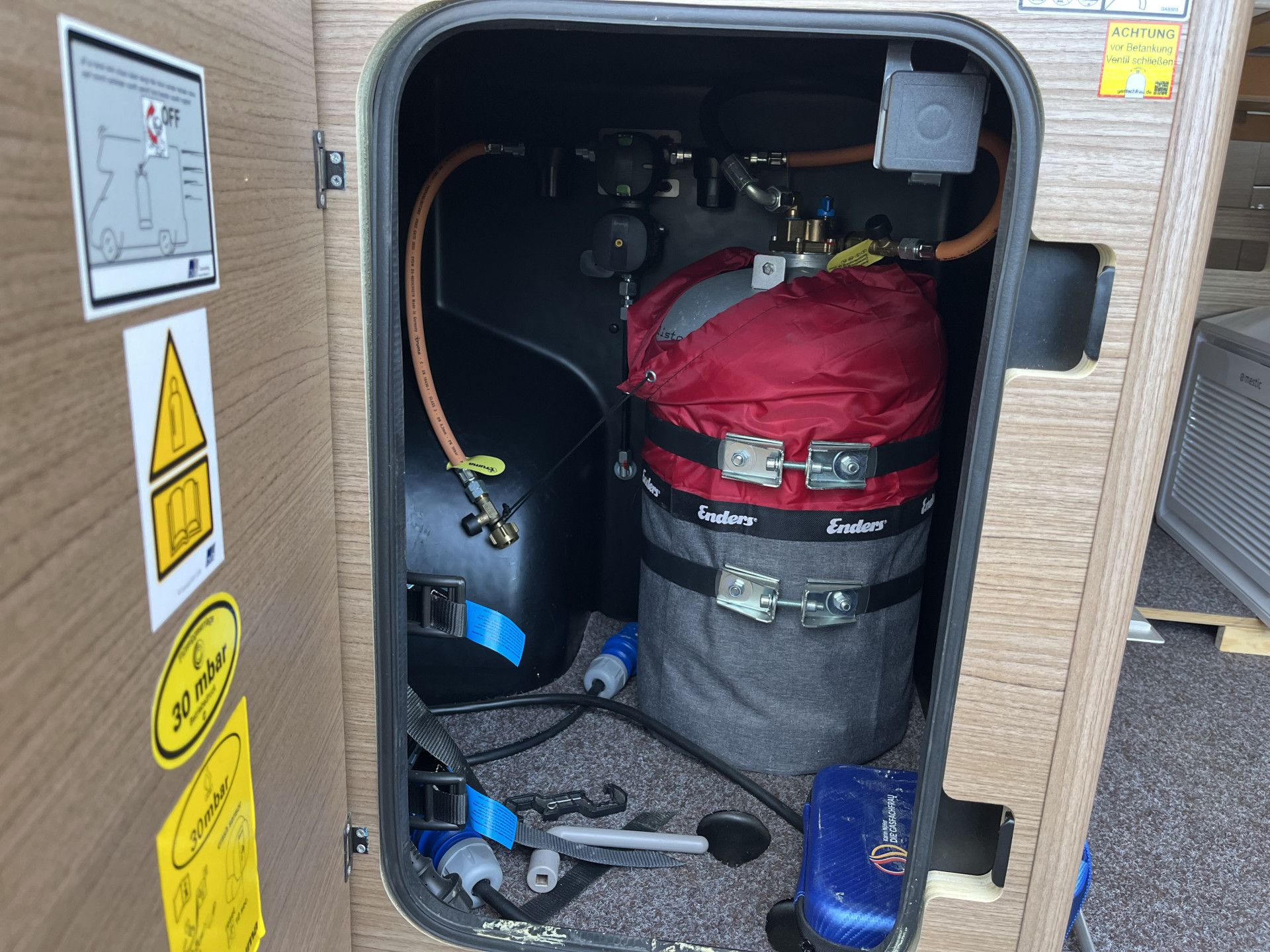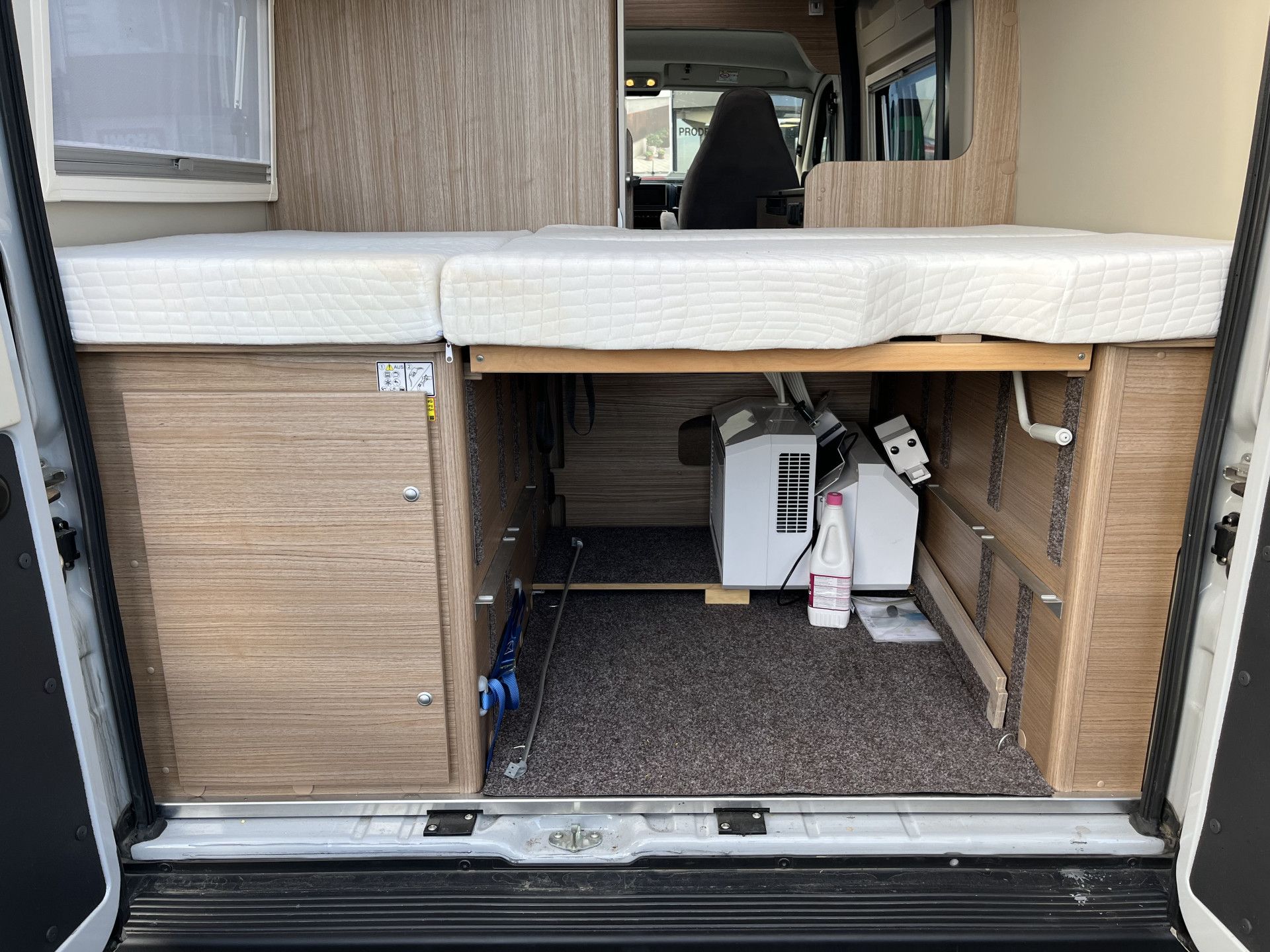 Domontáž příslušenství: multimédium Zenec X227 (Android + Apple Carplay), couvací kamera, solární set 180 Wp, LED pásek pod markýzu, 2.nástavbová baterie, plnící láhve Alugas