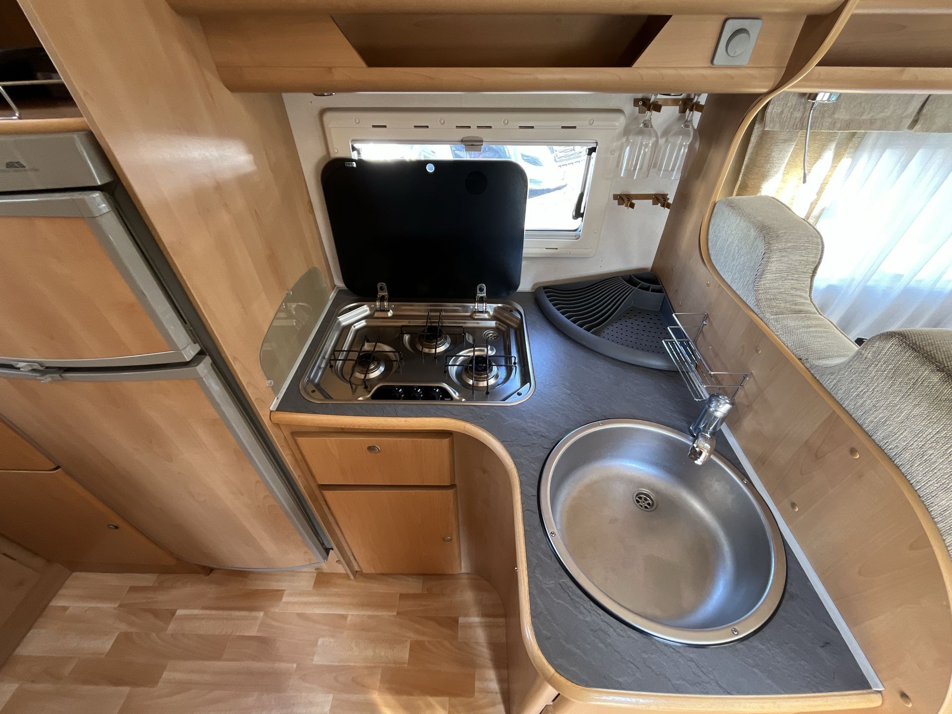 Prvky interiéru a výbava: velká vytápěná garáž, velká lednice s mrazákem a přídavným ventilátorem, dvojitá podlaha, oddělená sprcha od WC, 2x kazeta, tažné zařízení na 2 tuny, měchy na zadní nápravě, markýza, nosič na kola 2x nádrž na vodu celkem 170 l, solární panel, TV s DVD, satelit, trezor, baterie nástavby 240 Ah, venkovní přípojka na plyn, zimní kabát Konig, zimní pneu k vozu