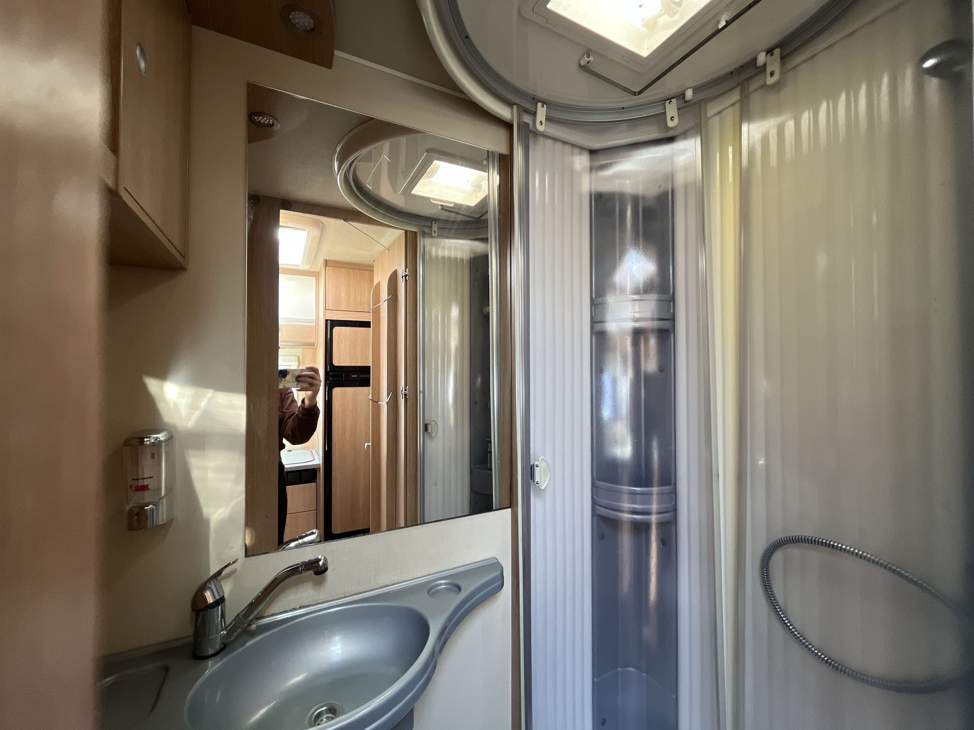 - Basic Paket (panoramatické střešní okno nad sezením, střešní okno 40 x 40 cm, obklad stěn a pevná zástěna sprchy, zrcadlo a šatní věšák, přední sedačky Captain Chair, zásuvky v kuchyni a garáži)