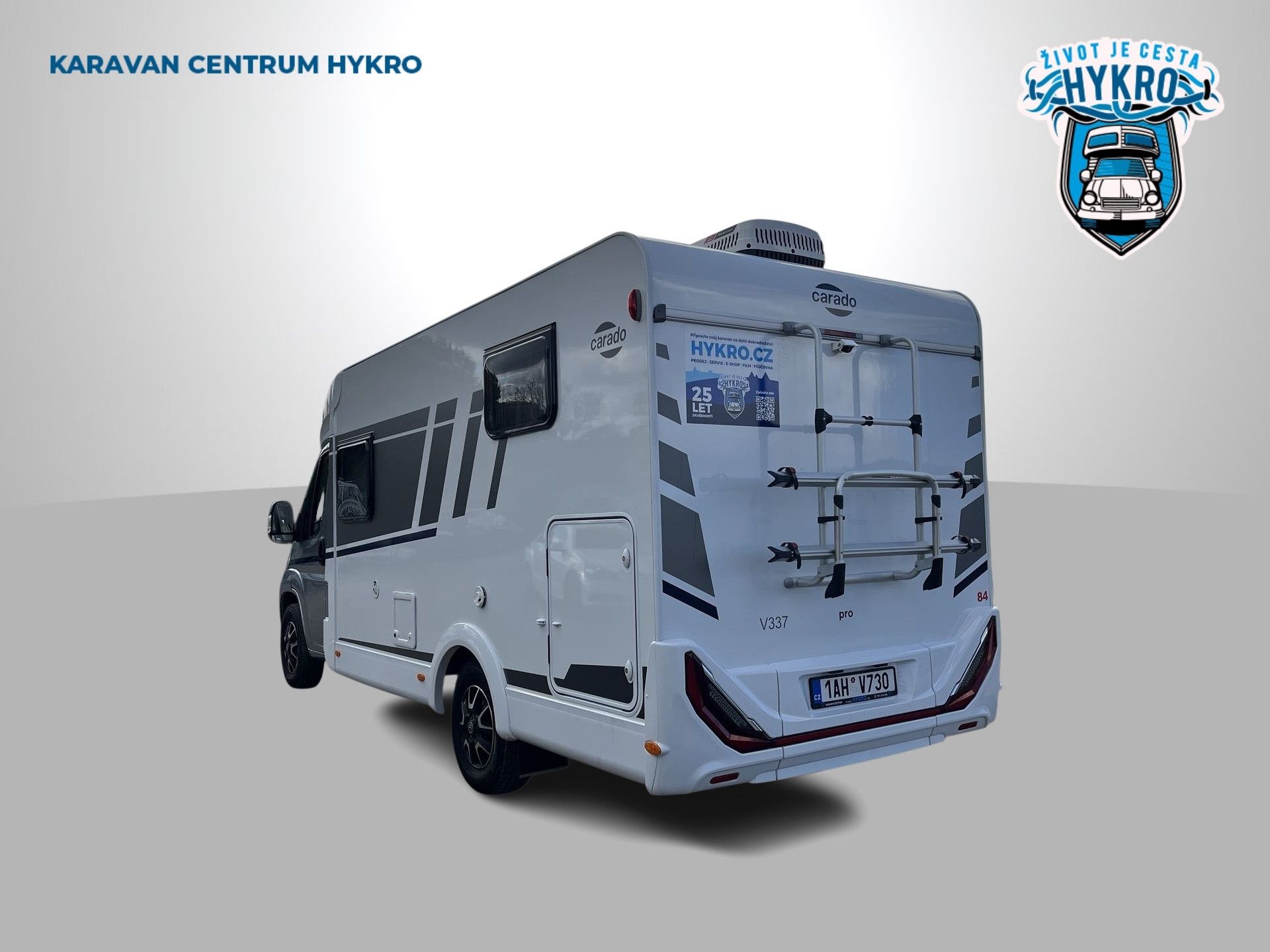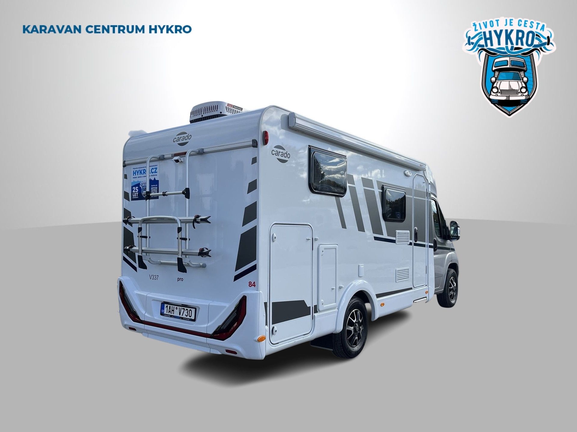 Zánovní kompaktní obytný vůz Carado V337 s podélnými lůžky. První registrace duben 2025. Nájezd 17 613 km.