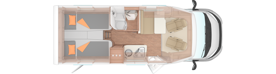 Kompaktní, ale výkonný. CaraCompact kombinuje ovladatelnost třídy dodávek s prostorem skutečného polointegrovaného vozidla. Kompaktní zvenčí, uvnitř nabízí dostatek prostoru pro vše, co dělá život v kempu krásným.