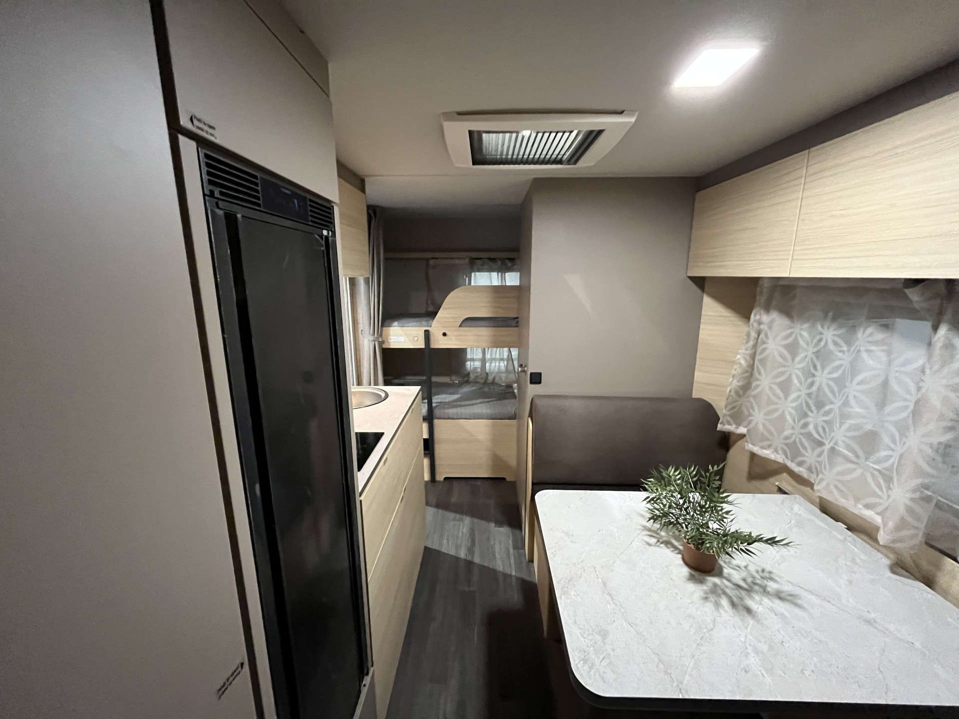 - SMART PAKET: stabilizátor závěsu, kombinované roletky v oknech, 12V rozvod teplého vzduchu, vestavěná nádrž vody 45 litrů, zesílené stabilizační vzpěry, vodní filtrační systém "BWT"